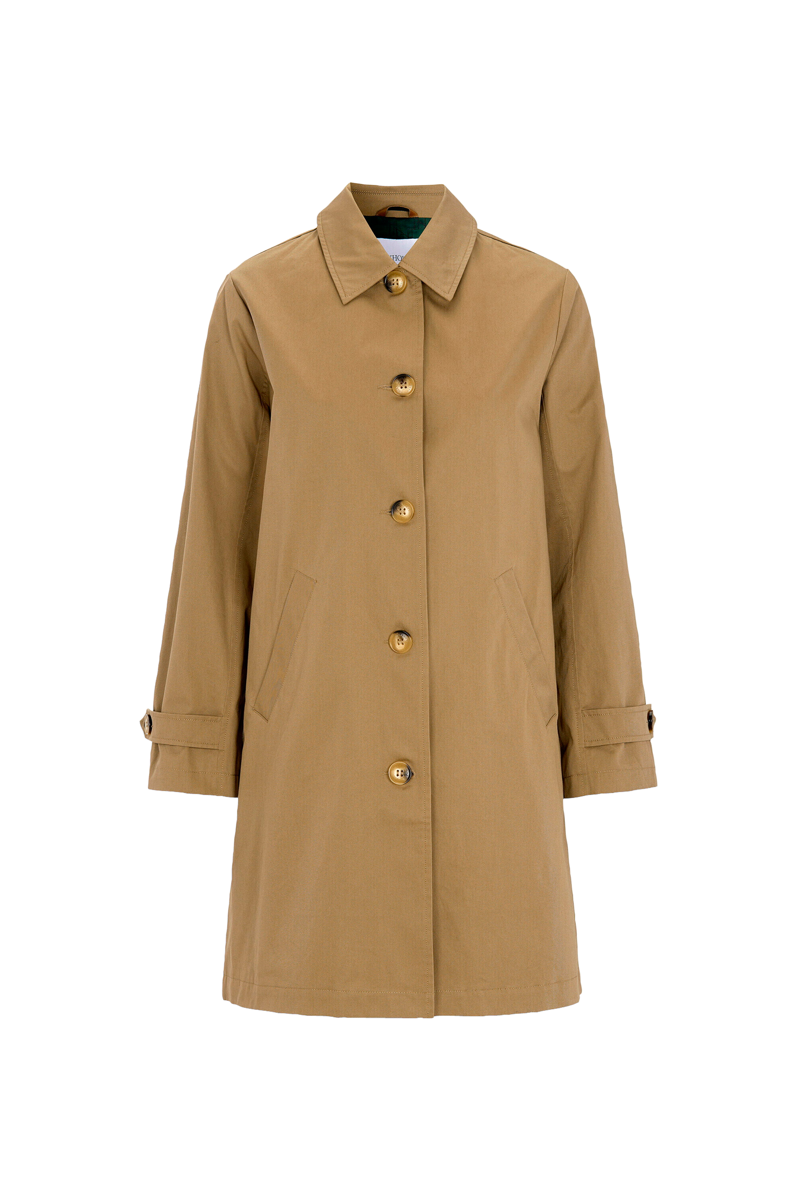 En bilfrakke i blød twill med en subtil a-form. Designet med sidelommer foran og fuldt foret med logostof. Ærmerne har stropdetaljer.