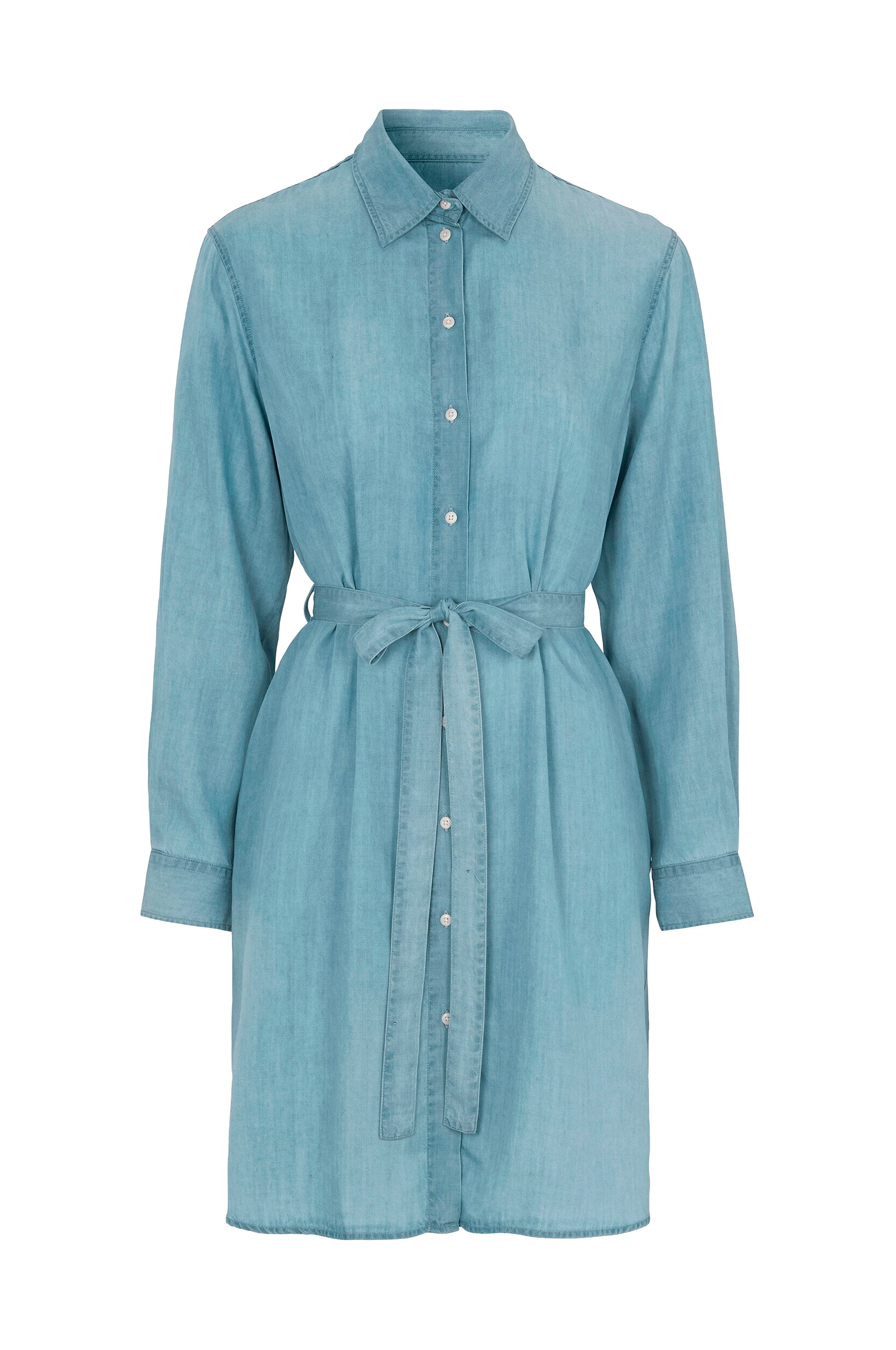 Langærmet skjortekjole i blød denim tencel. Kjolen har en lige pasform, en afrundet kant og sidelommer.