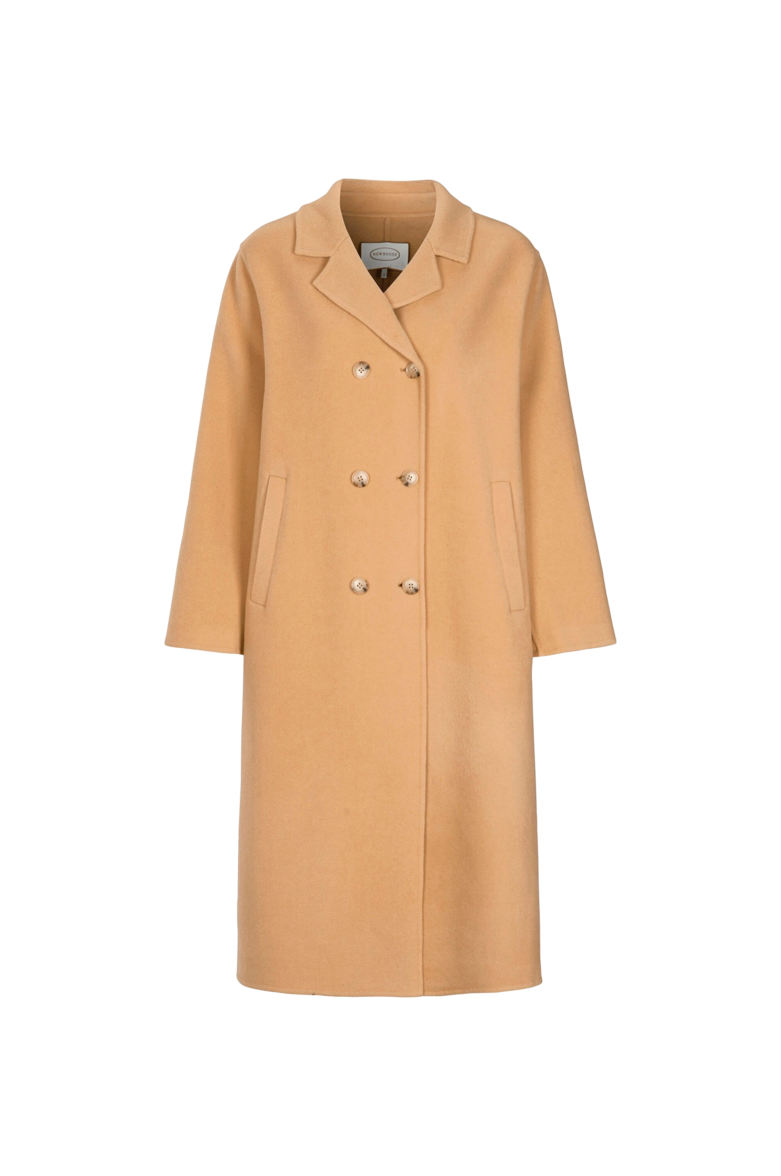 Uldfrakke i let oversized form med hængende skulder og dobbeltradet knapning. Frakken er lavet i double face-teknik.