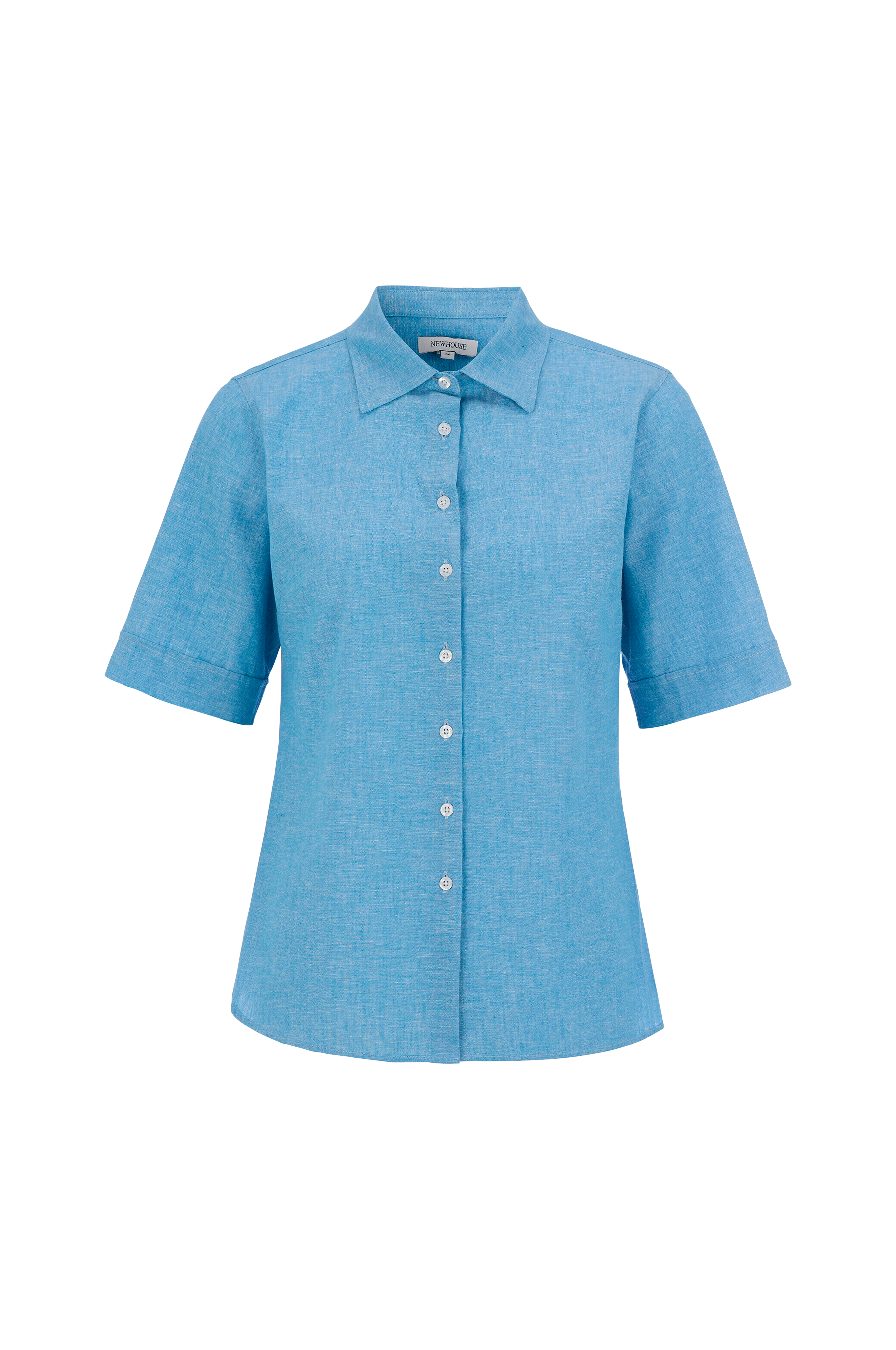Smal figursyet skjorte i bomuld/hør med kort ærme.