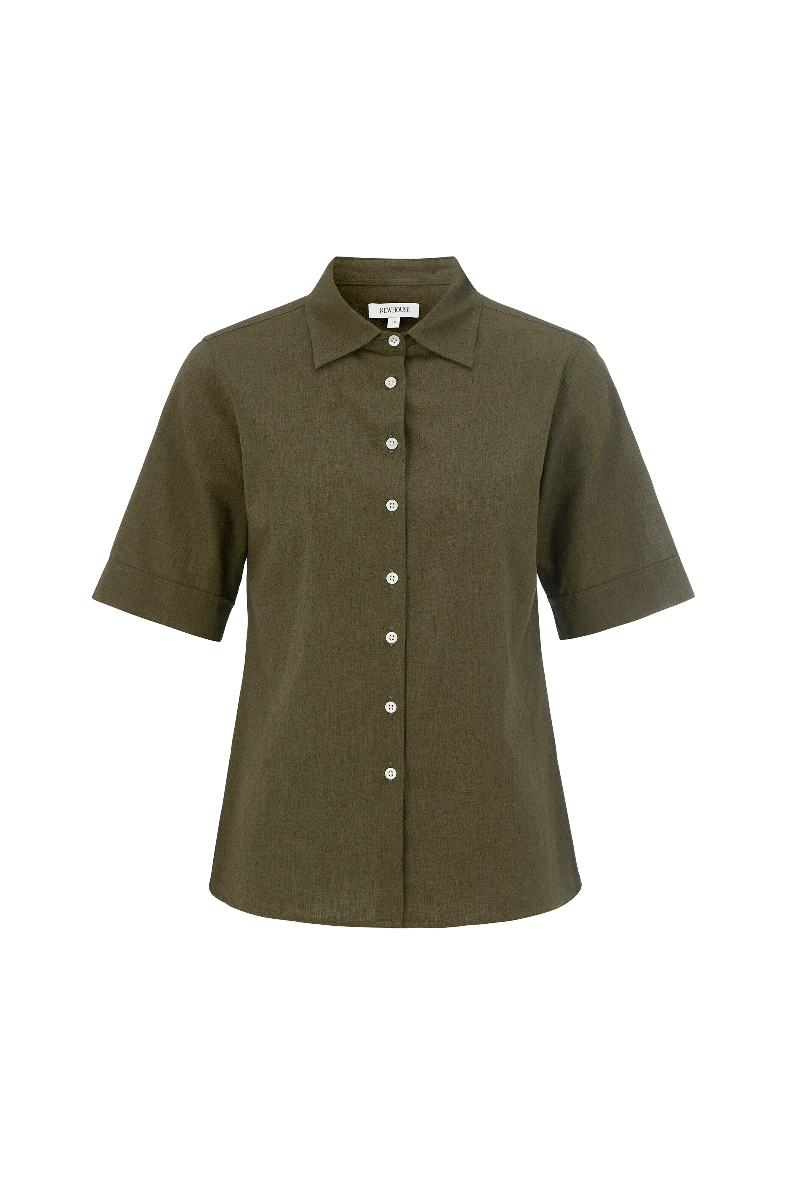 Smal figursyet skjorte i bomuld/hør med kort ærme.