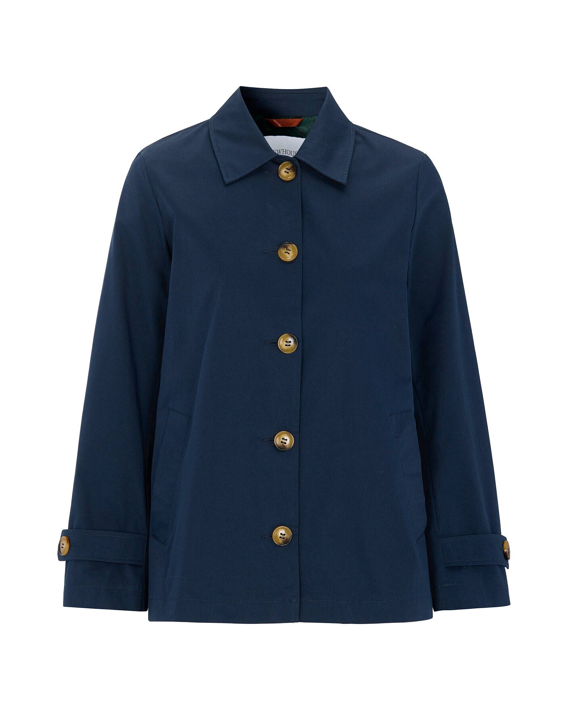 Kort twilljakke designet i en a-formet silhuet, der giver et feminint, rent look. Fuldt foret med logofor og afsluttet med sidelommer foran. Ærmerne har dekorative stropper som en raffineret detalje.