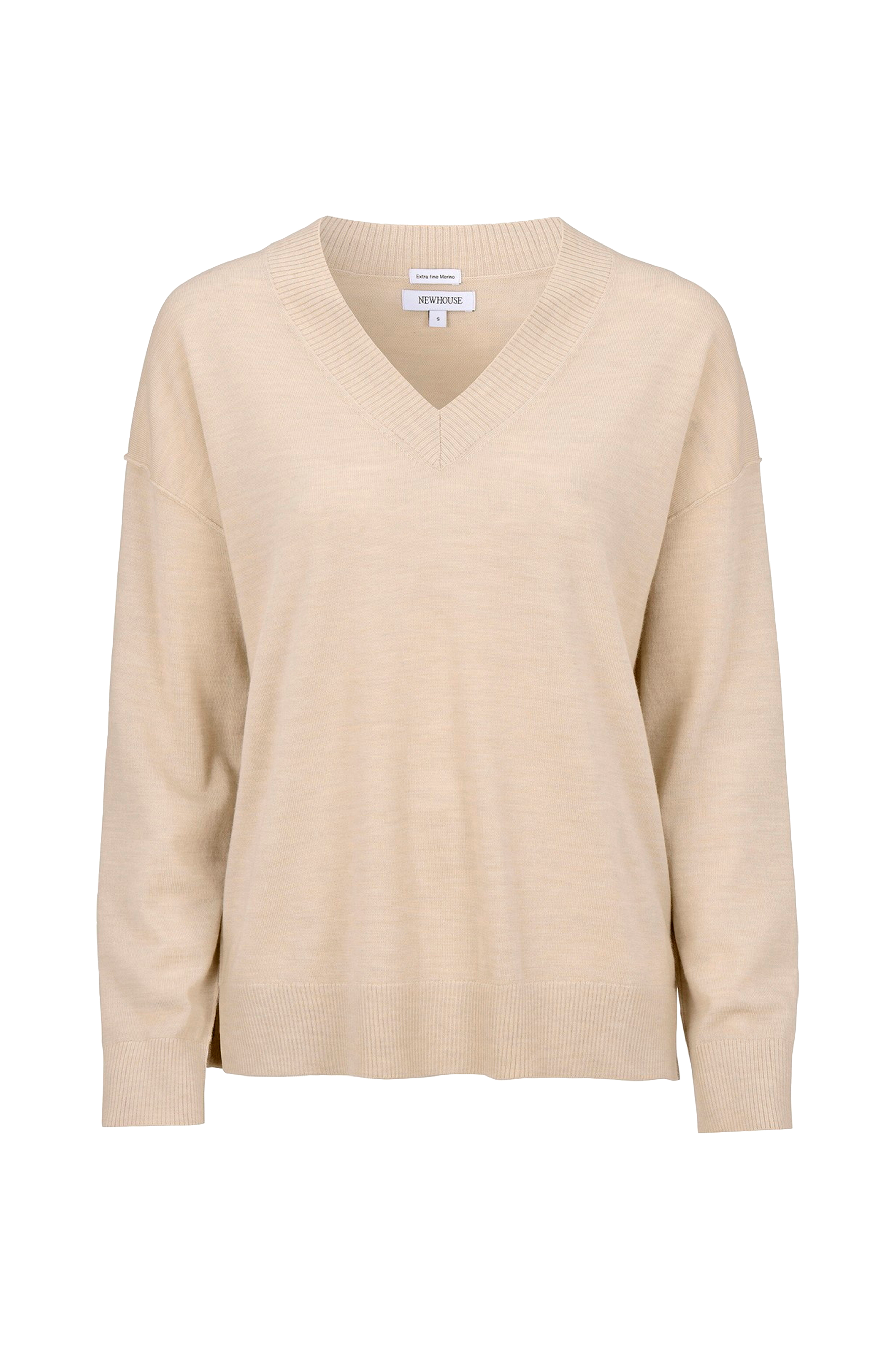 Sweater med V-hals i merinould med rå ender for et urbant look.