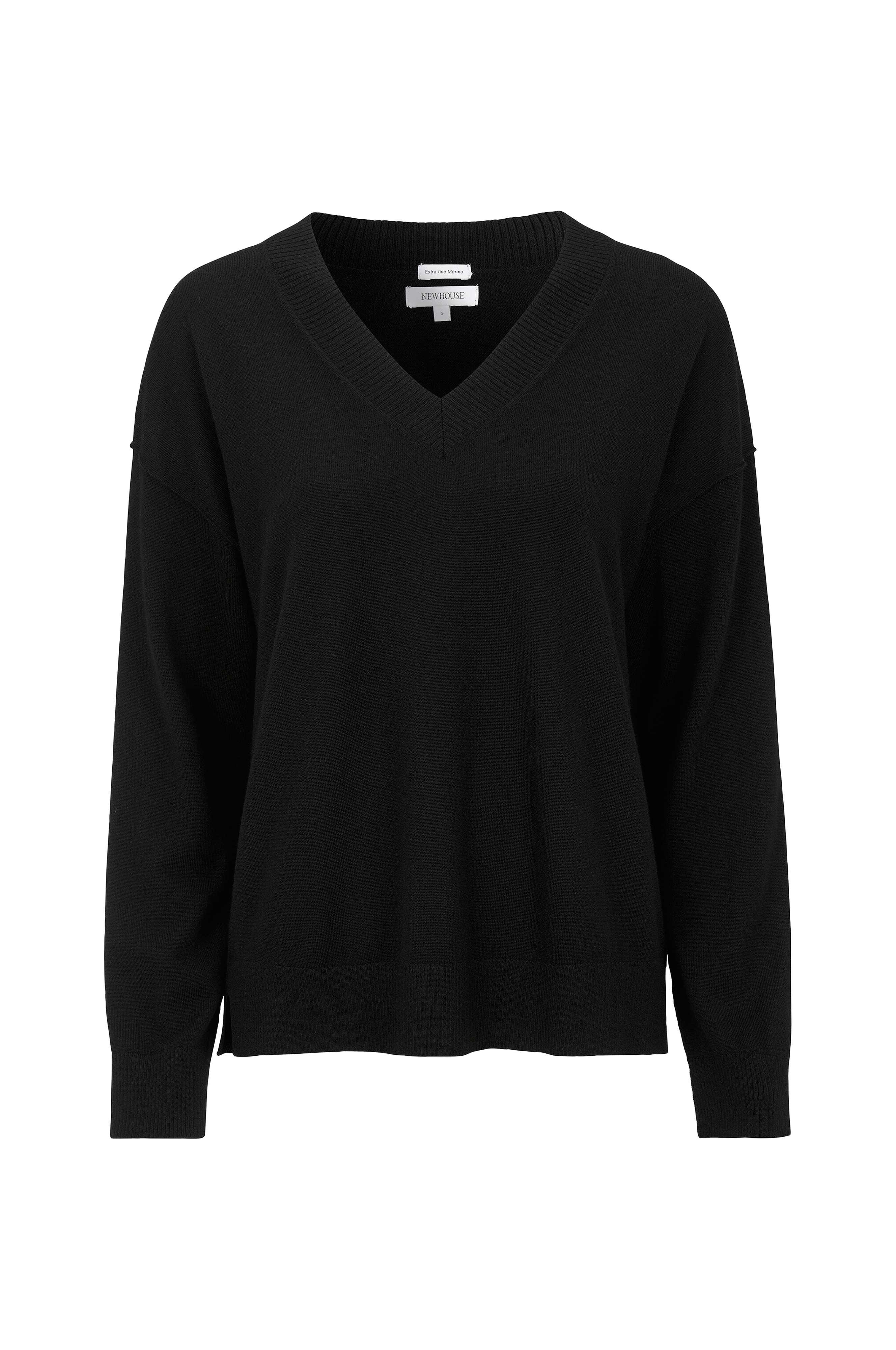 Sweater med V-hals i merinould med rå ender for et urbant look.