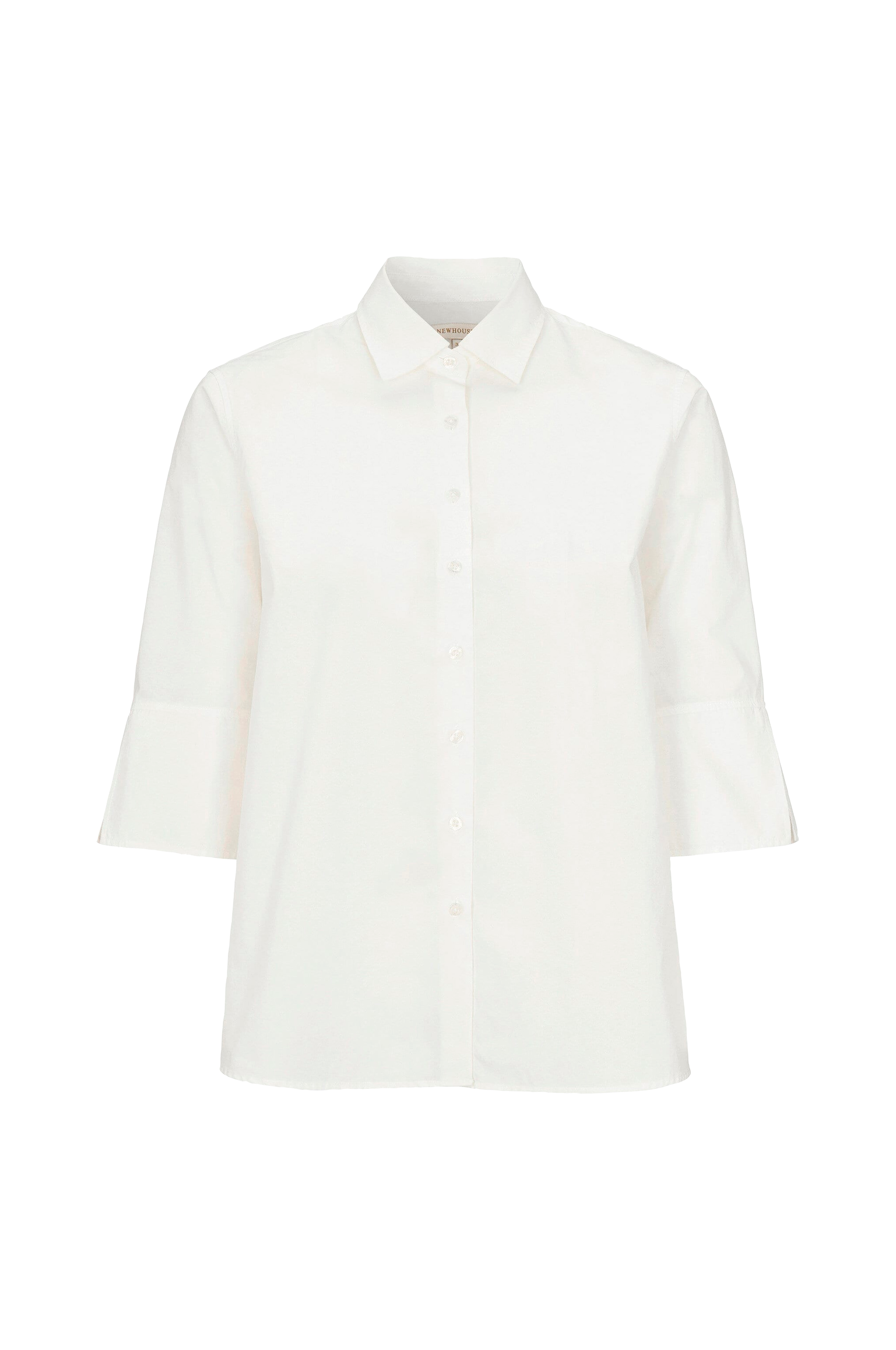 A-formet skjorte med korte ærmer med opsmøg. Skjorten er lavet af en smuk bomuldssatin.