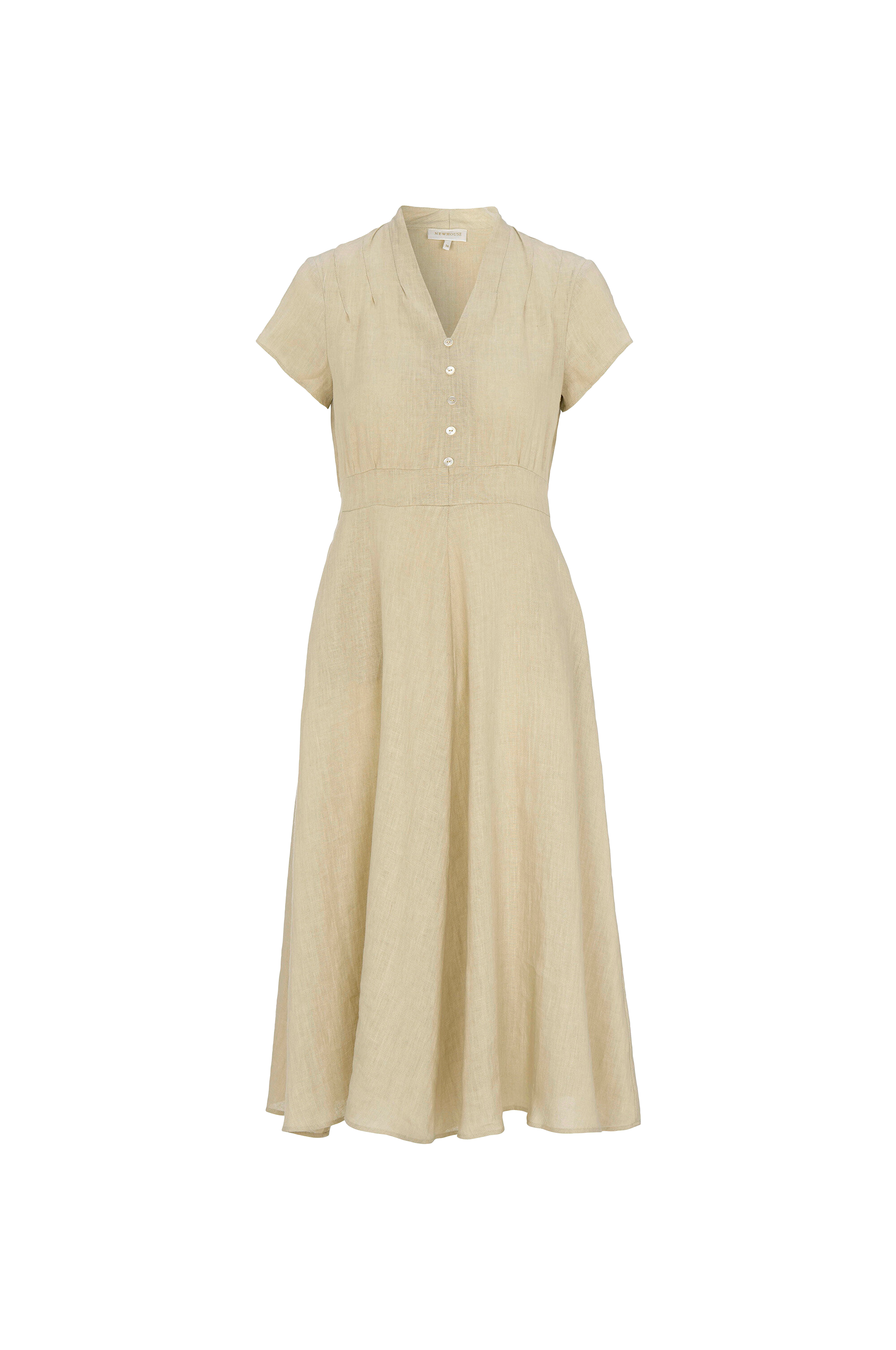 Sommerkjole i fit and flare-stil med et smukt linen stof. Den rynkede talje bagpå forstærker den feminine silhuet.