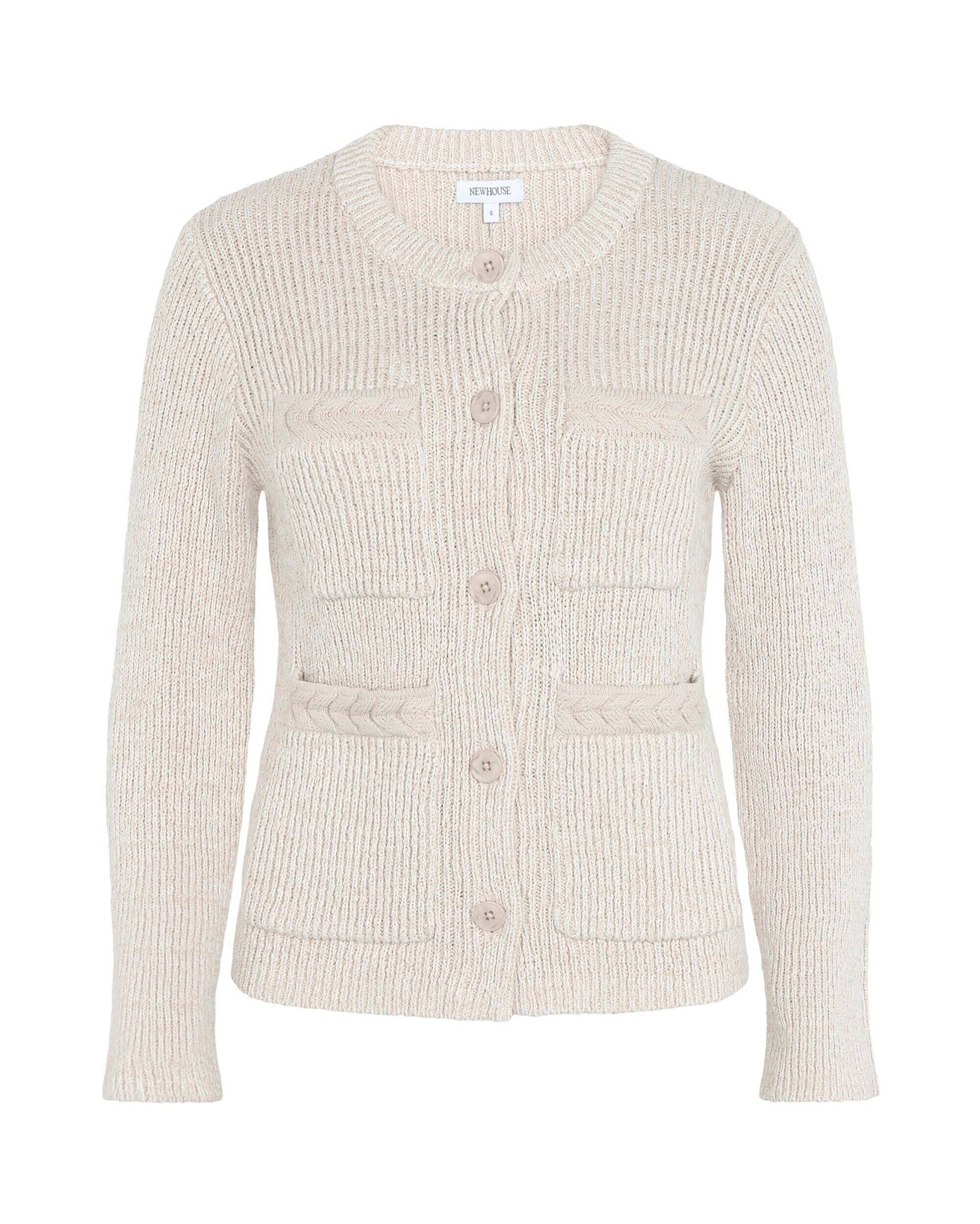 Strikket cardigan med ribstruktur i en meleret garnblanding og flettede detaljer ved forlommerne. Cardiganen er en del af newhouse' jubilæumskollektion.