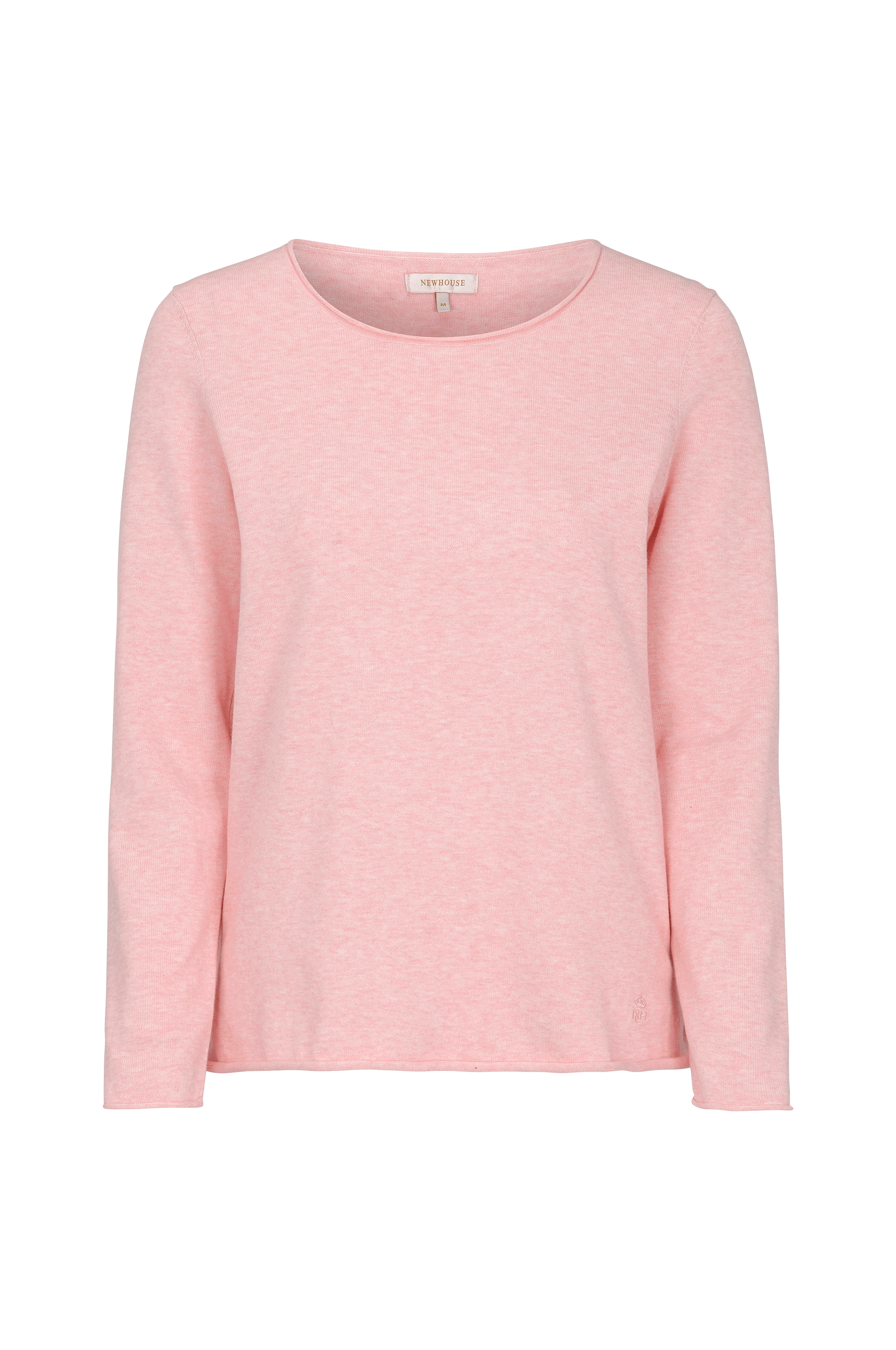 Finstrikket sweater med rund hals, fine rullekanter og diskret broderet logo i tone-i-tone nederst.