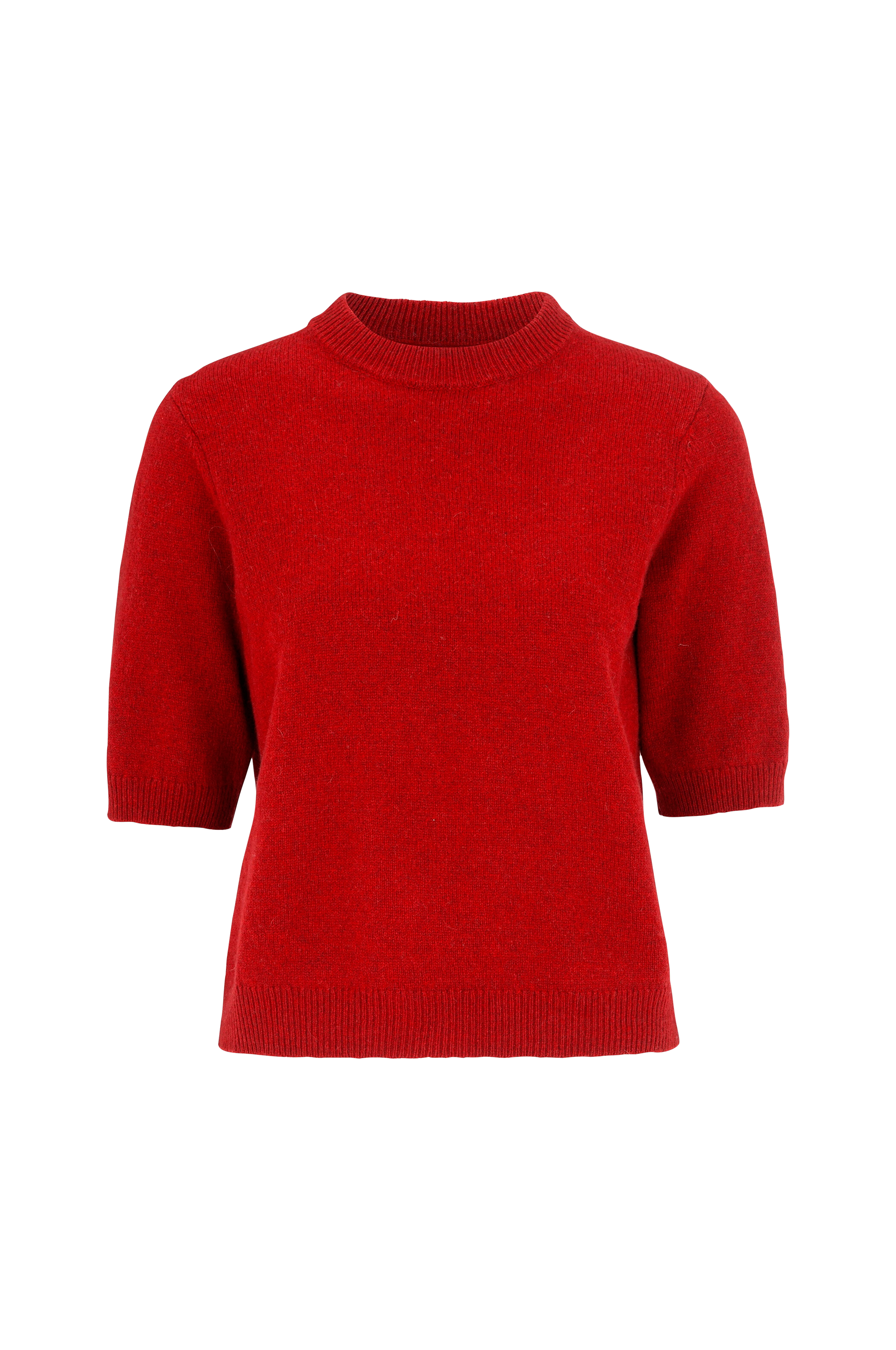 Strikket top med kort ærme, strikket i en blanding af rws-certificeret uld, bomuld og genbrugsnylon.