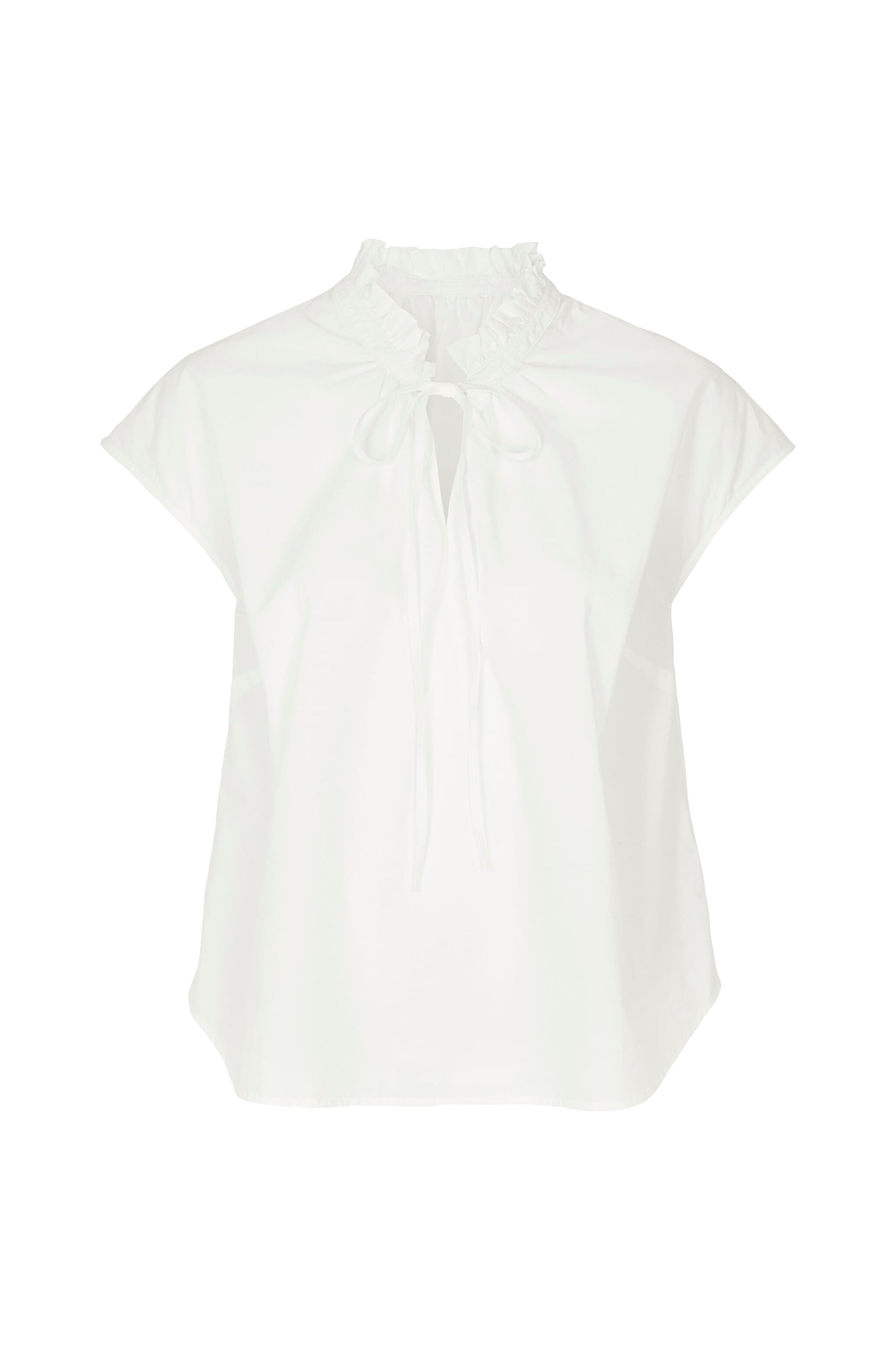 A-formet top med hætteærme og flæsekrave med rå kant.