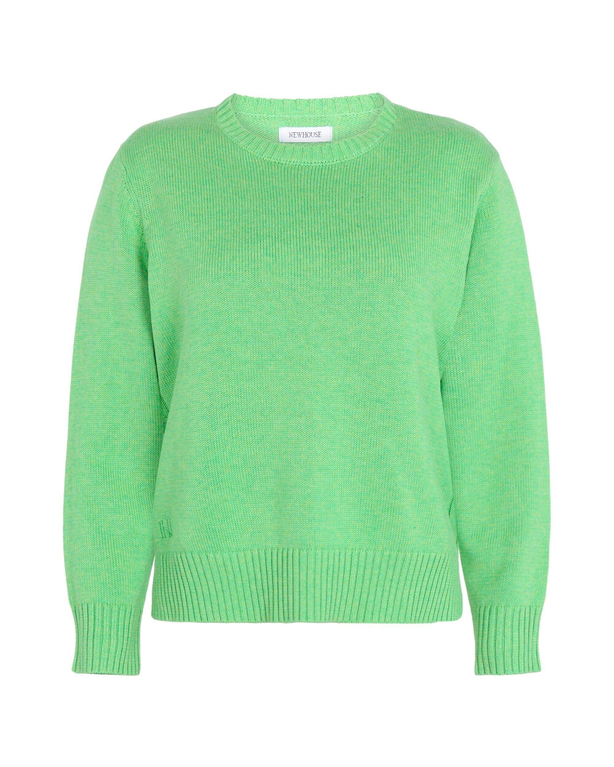 Sweater med rund hals, ribkanter og tonalt logobroderi i nederste hjørne. Har en slids i sidesømmen og en subtil kabeldetalje langs siden.