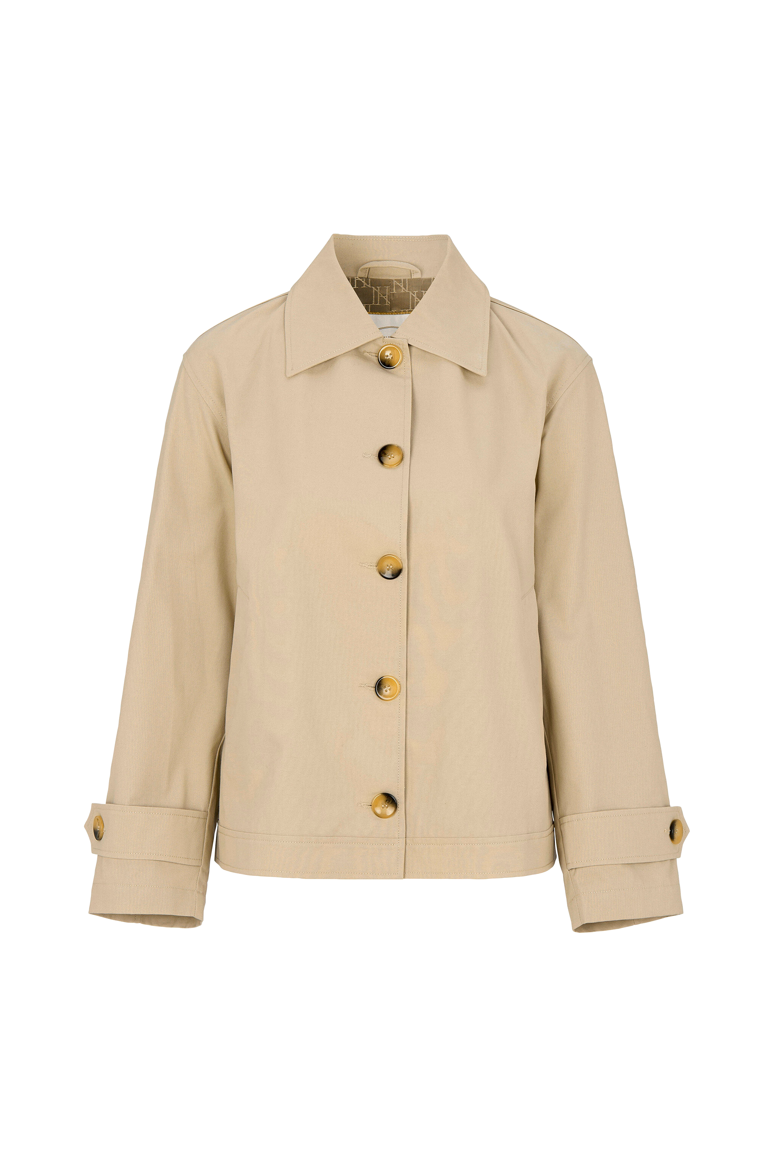 Kort twilljakke inspireret af trenchcoaten. Jakken har en firkantet pasform og knapper i imiteret horn.