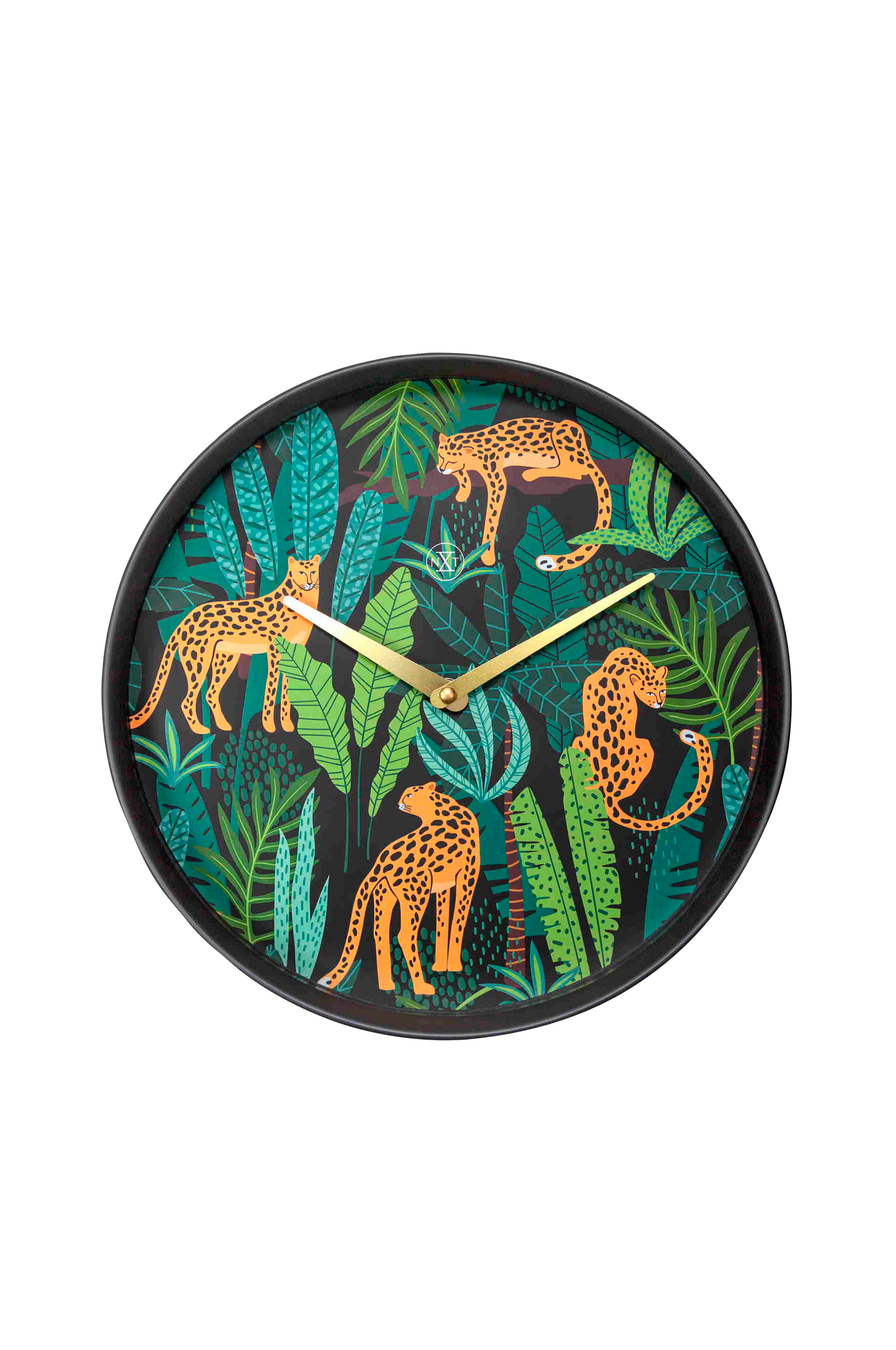 Trendy, rundt vægur med junglemotiver og elementer af leoparder. Et unikt og lydløst vægur til art deco-fans! Uret drives af et AA-batteri (medfølger ikke)Mål: Diameter 30 cmMateriale: PlastBatteri: 1 x AA (medfølger ikke)