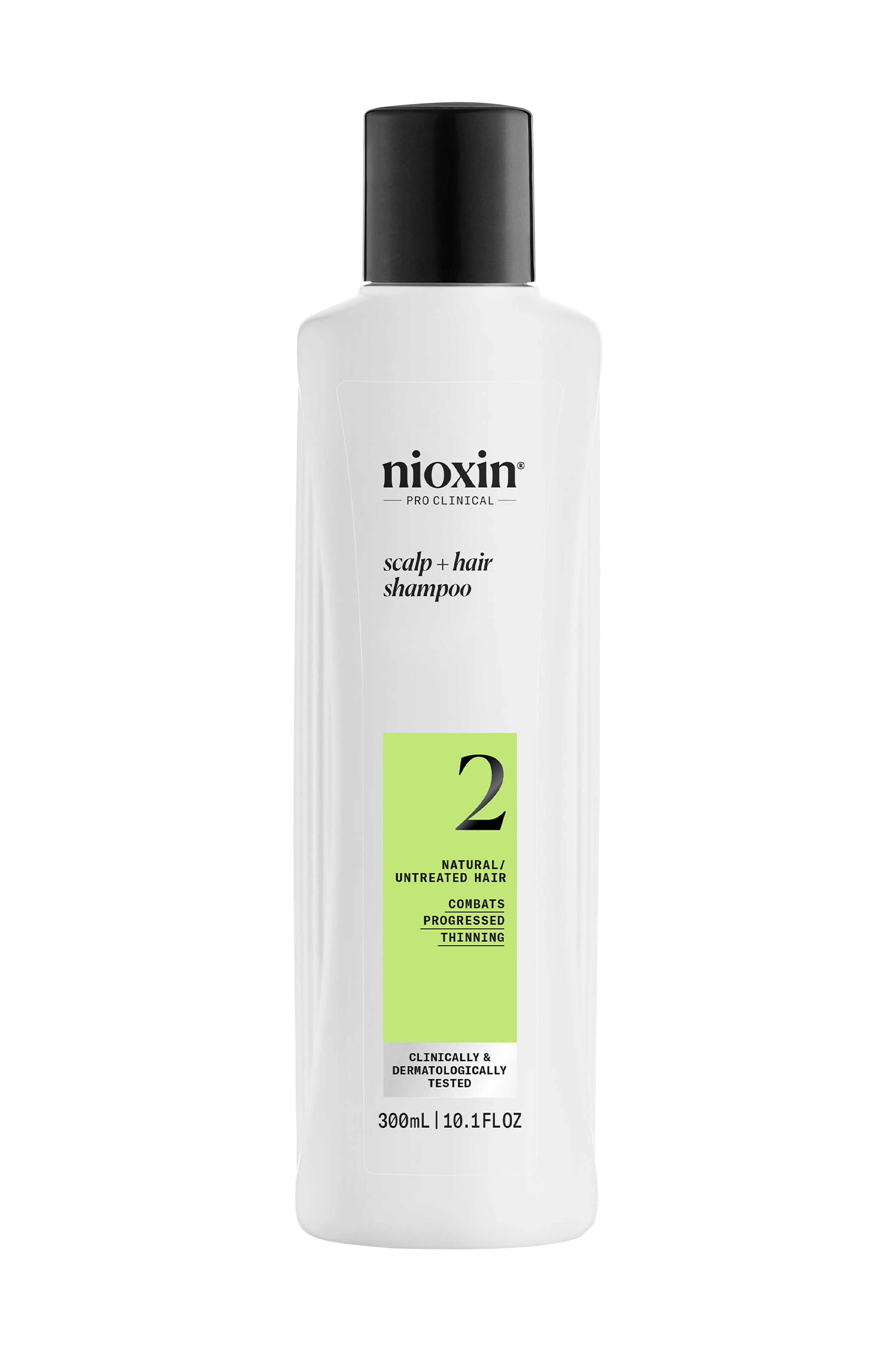 Nioxin System 2 Cleanser Shampoo til naturligt hår med fremskreden udtynding er det første trin i en tredelt Nioxin-kur, der er specielt formuleret til at styrke håret og forstærke hårets struktur. Denne professionelle dermarensende rens shampoo fjerner snavs, overskydende olie og andre miljømæssige rester fra hovedbunden og håret. Denne klinisk og dermatologisk testede shampoo er formuleret med niacinamid og biotin og fugter hovedbund og hår fra rod til spids, samtidig med at den gør hårstrukturen tykkere og stærkere. Følg op med Nioxin System 2 Conditioner and Treatment for at opnå de bedste resultater. Fås i 2 størrelser: 300 ml og 1000 ml.