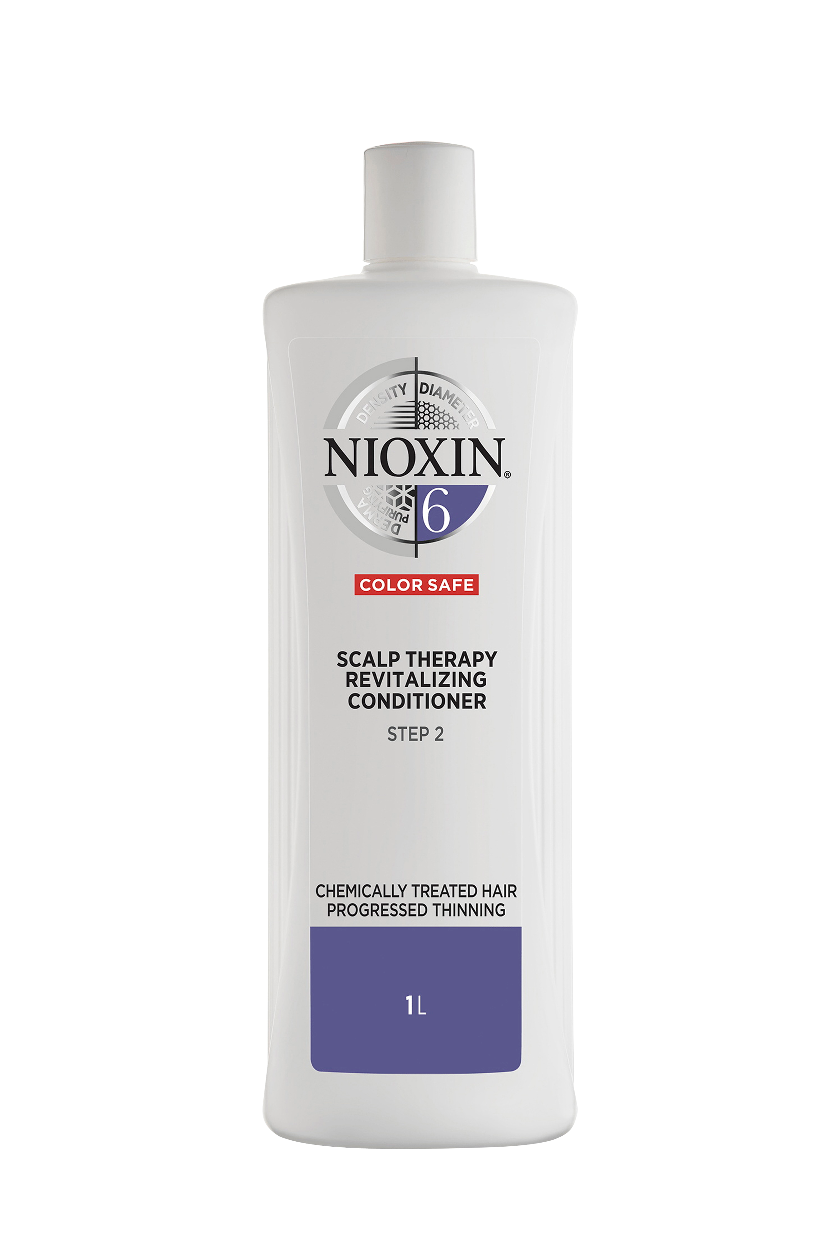 Nioxin System 6 Scalp Therapy Revitalizing Conditioner til bleget og kemisk behandlet hår med progressivt hårtab er det andet trin i en tredelt Nioxin-rutine, specielt formuleret til at styrke håret og forhindre brud. Denne udglattende og plejende balsam hjælper med at bevare fugtbalancen, styrke hårstrukturen og øge hårets modstandsdygtighed, så håret ser sundere og fyldigere ud. Denne dermatologisk testede balsam med ekstrakter af hvid te og pebermynteolie er klinisk bevist at reducere hårtab på grund af knækkede hårstrå med op til 91%*. Balsamen er velegnet til bleget og kemisk behandlet hår med normalt til progressivt hårtab. Brug sammen med Nioxin System 6 Cleanser Shampoo og Nioxin System 6 Treatment for de bedste resultater.