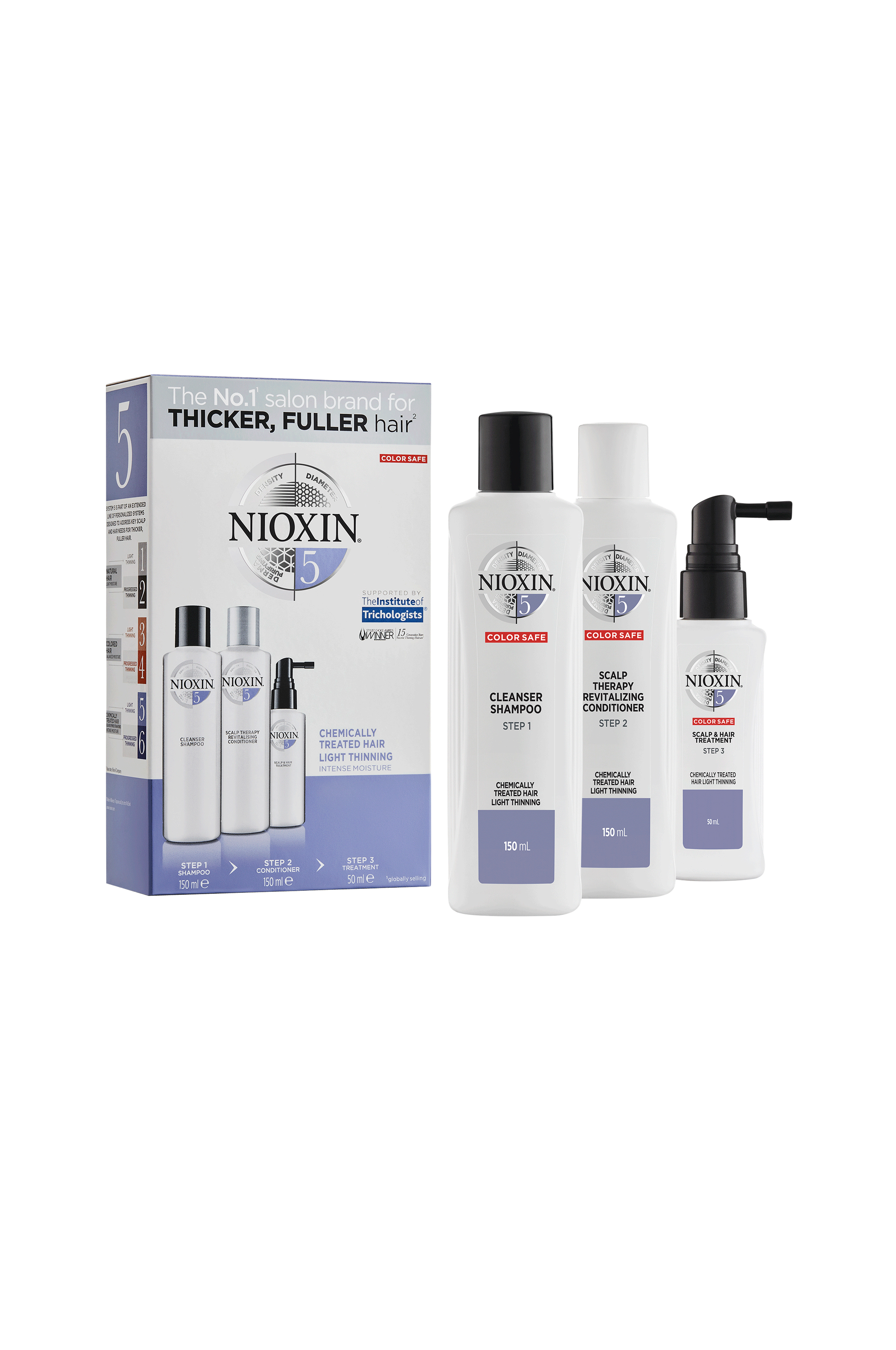 Giver volumen og styrker tyndt hår ved at forstørre hårets struktur og genoprette fugtbalancen takket være det innovative Nioxin Hair System Kit 5 til normalt til tyndt hår, mellemtykt til groft, naturligt eller kemisk behandlet hår. BioAMP-teknologien plejer tykkere hår ved at øge hvert hårstrås fylde og reducere håraffald. Transaktivt system hjælper med at fjerne talg og snavs fra hårbunden.