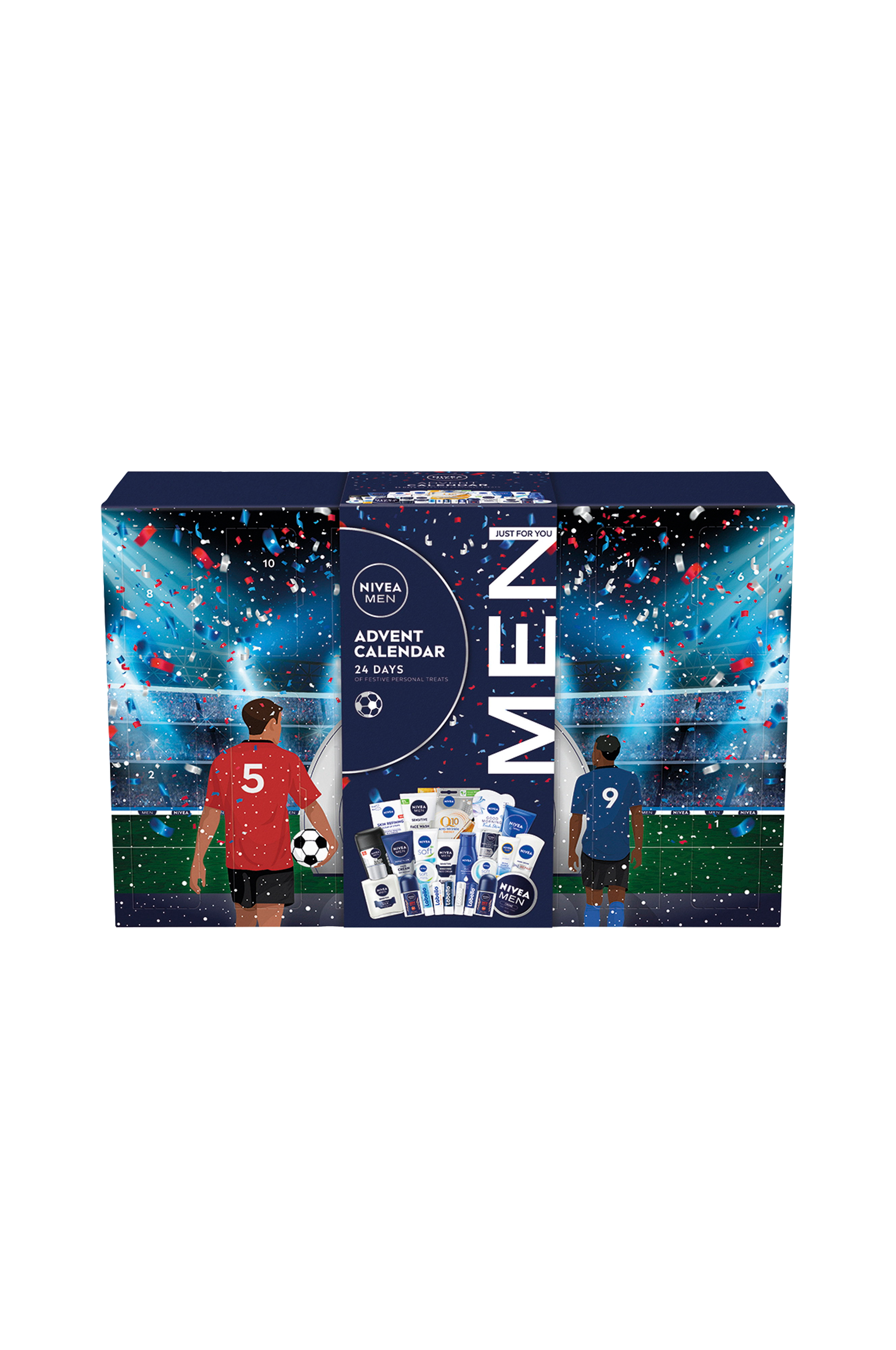 Tæl dagene ned til jul med NIVEAs festlige adventskalender til mænd. En kalender med 24 spændende overraskelser til din daglige hudplejerutine. Dette er en gaveæske med nøje udvalgte produkter fra NIVEA og Labello. Indeholder 24 produkter, herunder læbepomade, ansigtsmaske, bodylotion, ansigtscreme og deodorant samt andre overraskelser. Forkæl dig selv eller en, du holder af, med en adventskalender fra NIVEA! 24 dage med hudplejeoverraskelser udvalgt kun til dig og din hud. Hudpleje fra NIVEA MEN: Tag et øjeblik til dig selv hver dag.