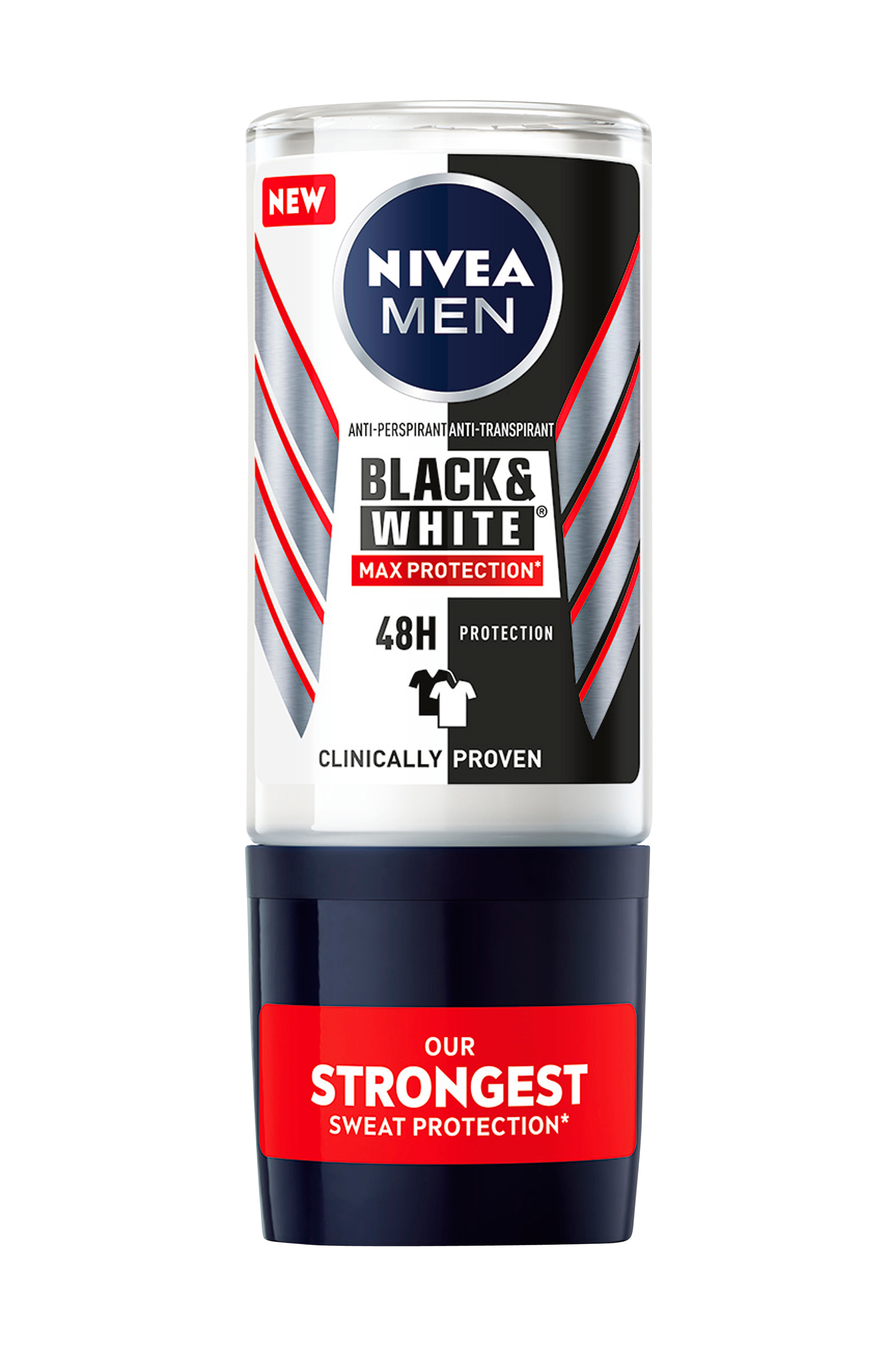 Nivea Men Black & White® Max Protection Roll On giver den stærkeste svedbeskyttelse blandt Nivea Mens Black & White® antiperspiranter (klinisk bevist). Pålidelig beskyttelse mod sved, som samtidig passer på din hud. Deodoranten beskytter også mod hvide mærker på sort tøj og gule pletter på hvidt tøj. Sort tøj bliver ved med at være sort og hvidt tøj hvidt længere. Deodoranten beskytter dig i 48 timer mod sved og kropslugt. Dermatologisk testet.