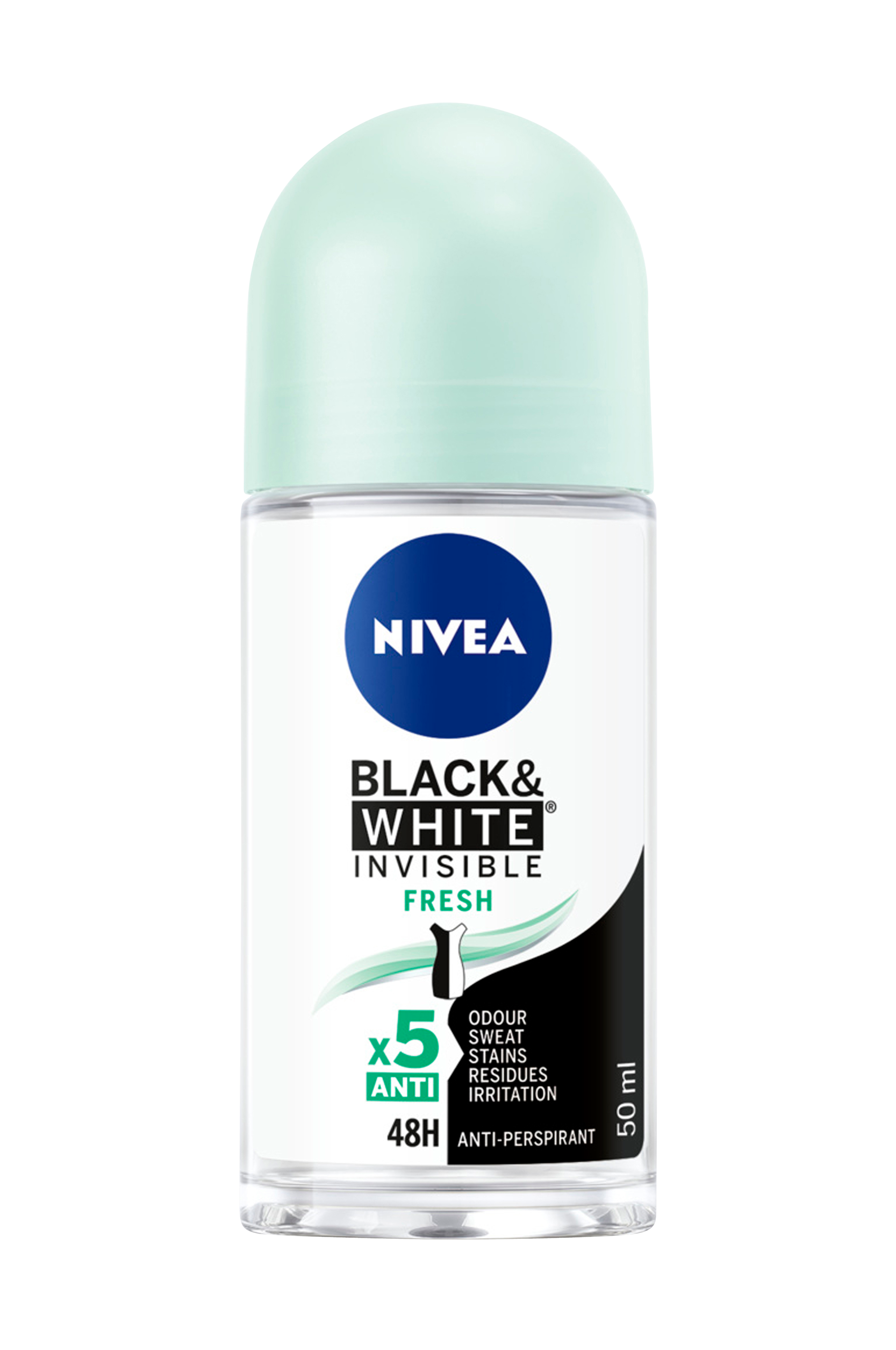 Nivea Black & White Invisible Fresh antiperspirant deodorant forhindrer hvide mærker på mørkt tøj og gule pletter på lyst tøj. Den unikke formel giver dig en frisk følelse og beskytter dig i 48 timer mod sved og kropslugt men er samtidigt skånsom mod din hud og holder den sund. Dermatologisk testet.