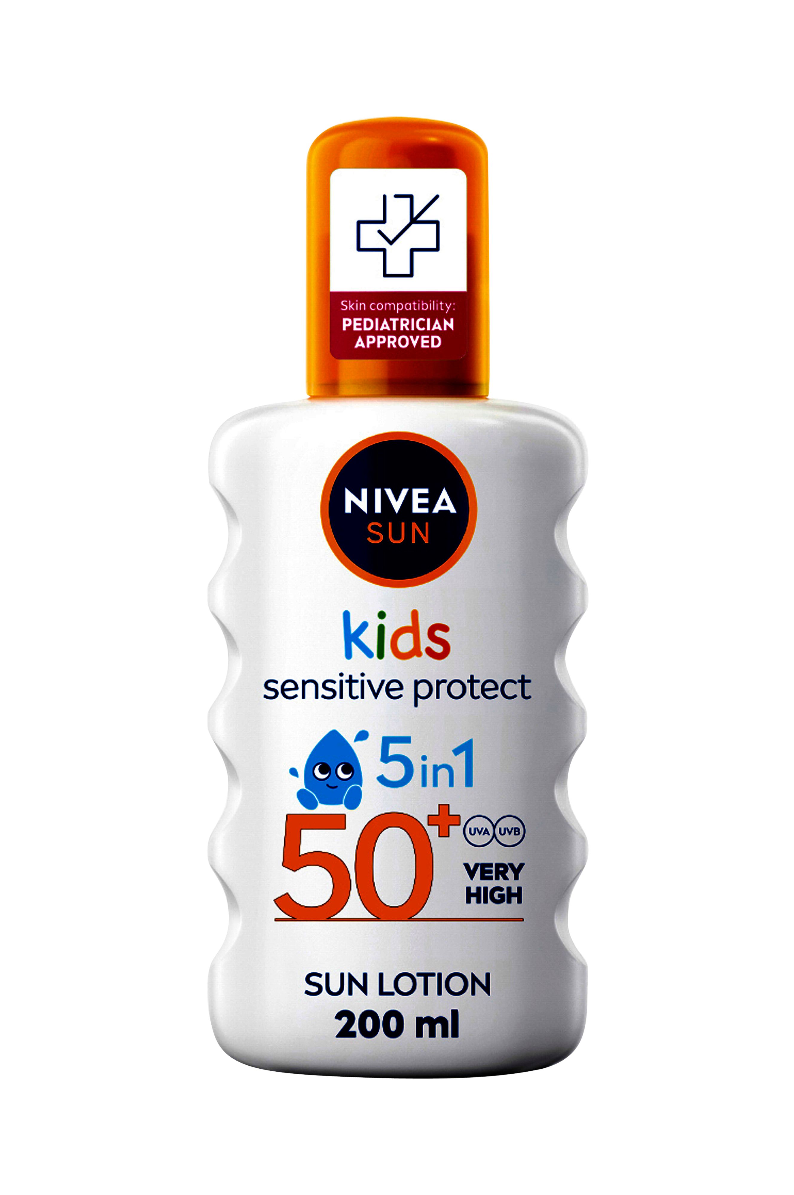 Solbeskyttelsesspray til børn med solfaktor SPF 50+ - der beskytter huden indefra og udefra.