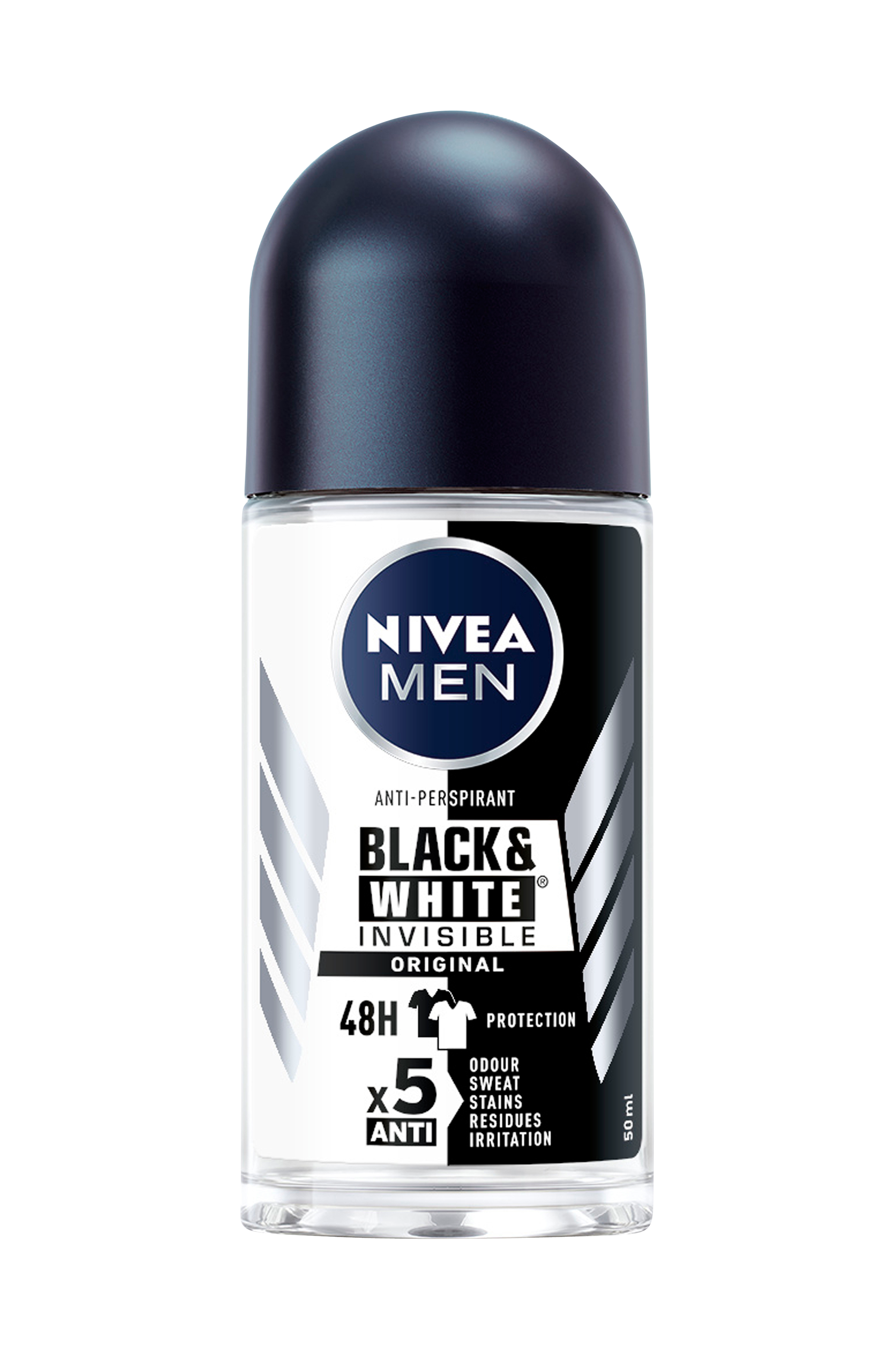 Nivea Men Black & White Invisible Original antiperspirant deodorant forhindrer hvide mærker på mørkt tøj og gule pletter på lyst tøj. Den unikke formel beskytter dig i 48 timer mod sved og kropslugt men er samtidigt skånsom mod din hud. Dermatologisk testet.