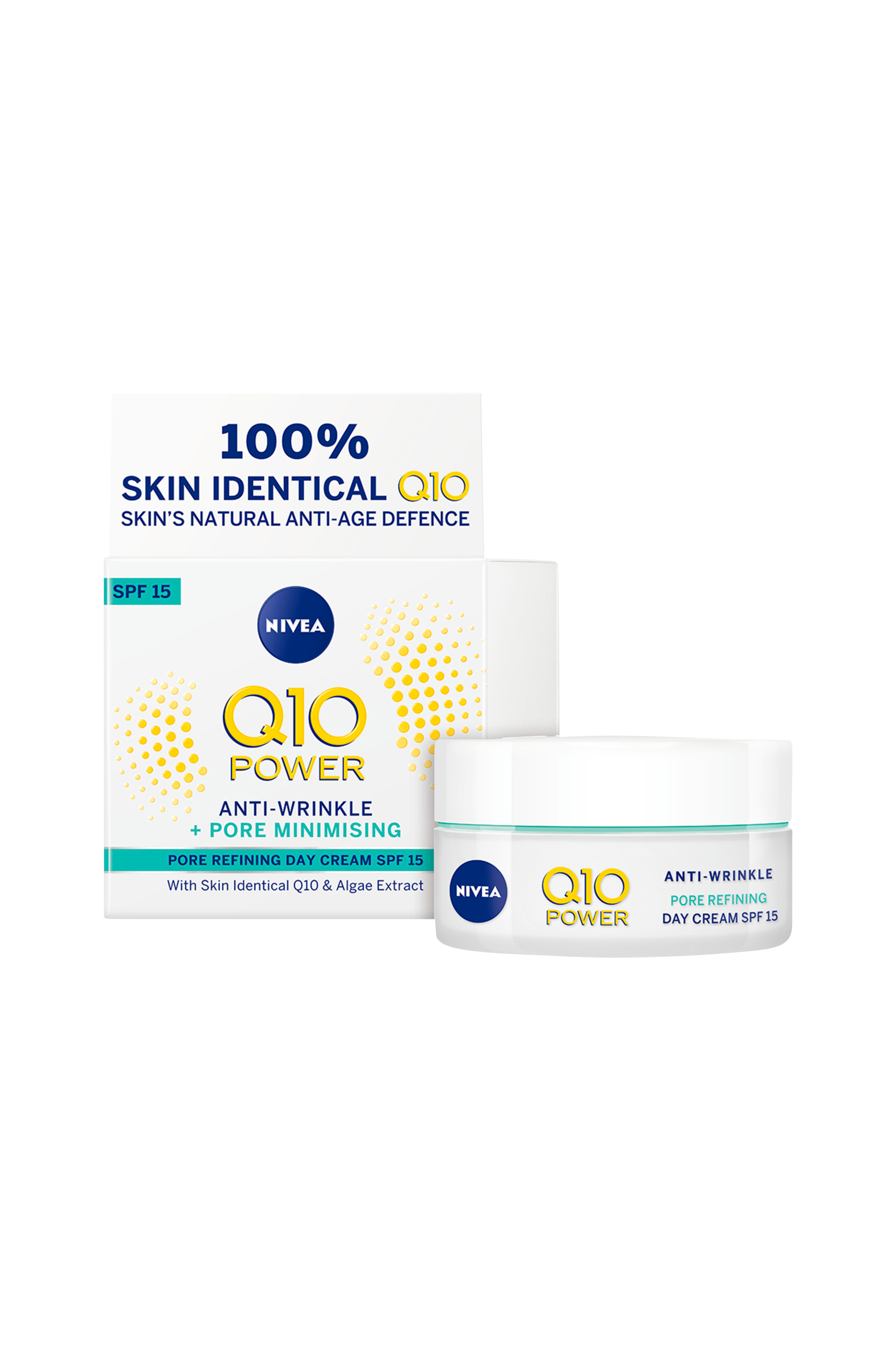 Nivea Q10 Power Pore Refining Day er specielt udviklet til at passe til behovet ved kombineret hud. Formlen indeholder naturligt Q10 og alger og reducerer synlige rynker på fire uger samt styrker huden på to uger. Indeholder SPF15 med UVA- og UVB-filtre, der beskytter huden mod rynker, alderspletter og for tidlig ældning forårsaget af farlig UV-stråling. Dermatologisk testet.