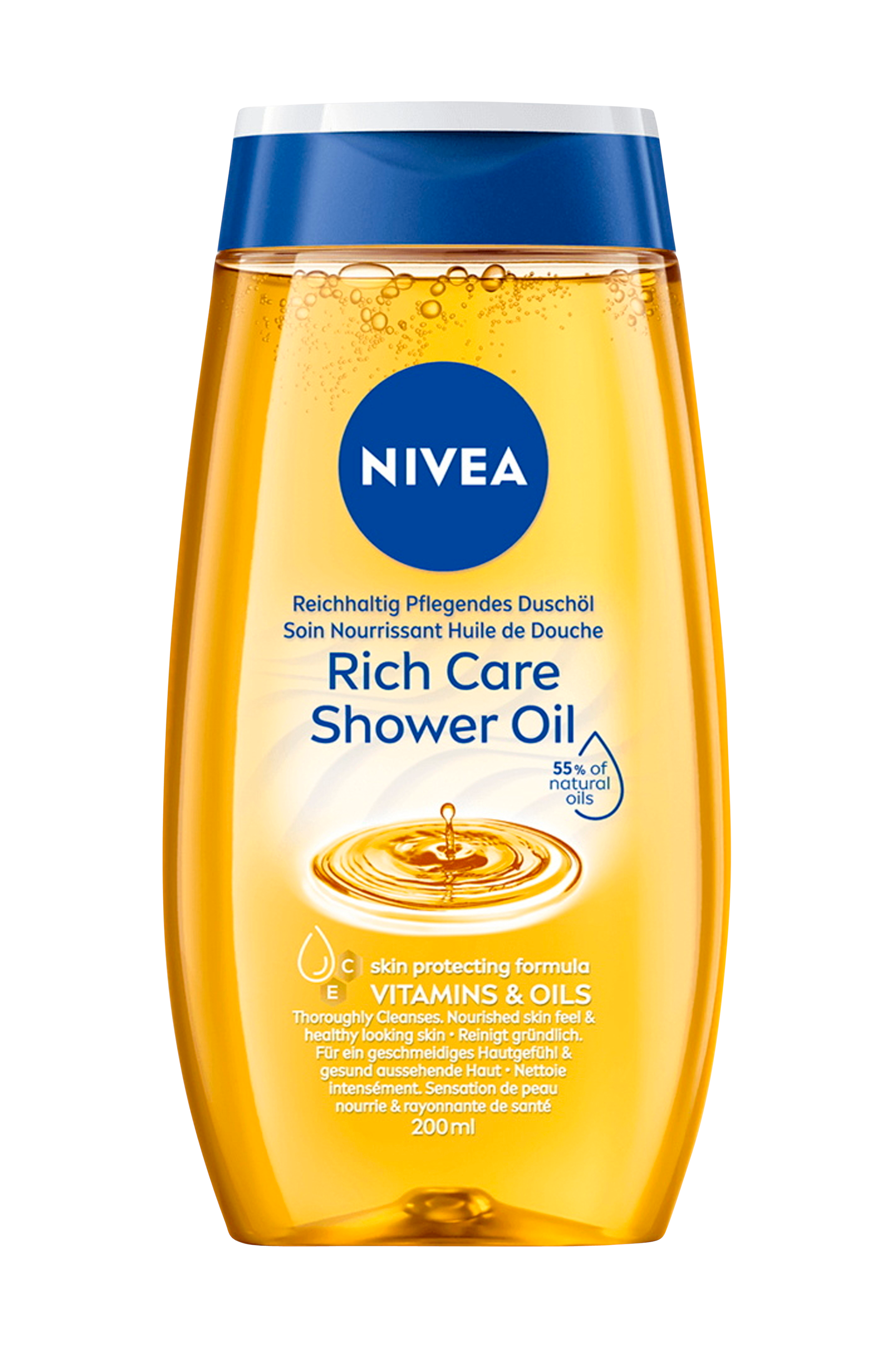 Nivea Rich Caring Shower Oil er en badeolie, der renser din hud i dybden samtidig med at den plejer huden. Den er lavet med en pH-hudneutral formel, der er i balance med hudens mikrobiom. Den indeholder også C- og E-vitamin samt 55 % naturlige olier. Passer til alle hudtyper og er særligt egnet til tør hud.