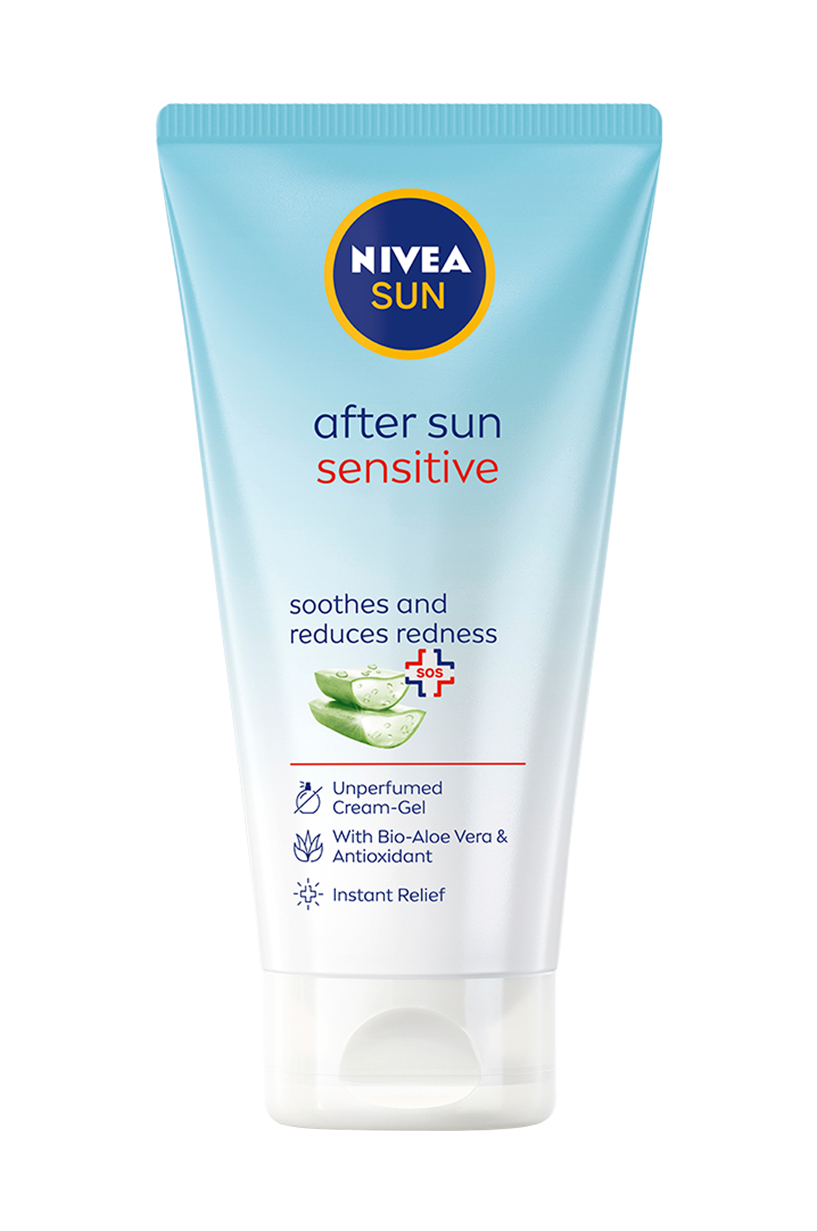 Oplev den beroligende lindring fra Niveas Sensitive After Sun Cream Gel. Den lette, parfumefri formel er designet specielt til følsom hud og indeholder økologisk aloe vera og fugtgivende elementer. Den absorberes hurtigt, fedter ikke og genopretter hudens fugtbalance og giver en beroligende, forfriskende effekt. Creme-gelen hjælper med at reducere hudirritation og rødme, samtidig med at den giver fugt i 48 timer. Dette dermatologisk testede produkt er let at påføre og passer til alle hudtyper, især dem, der er følsomme. Sørg for at smøre rigeligt på efter soleksponering. Mærk forskellen med Niveas plejende solprodukter, der kombinerer effektiv UV-beskyttelse med aktive ingredienser, der giver fugt og foryngelse hele dagen.