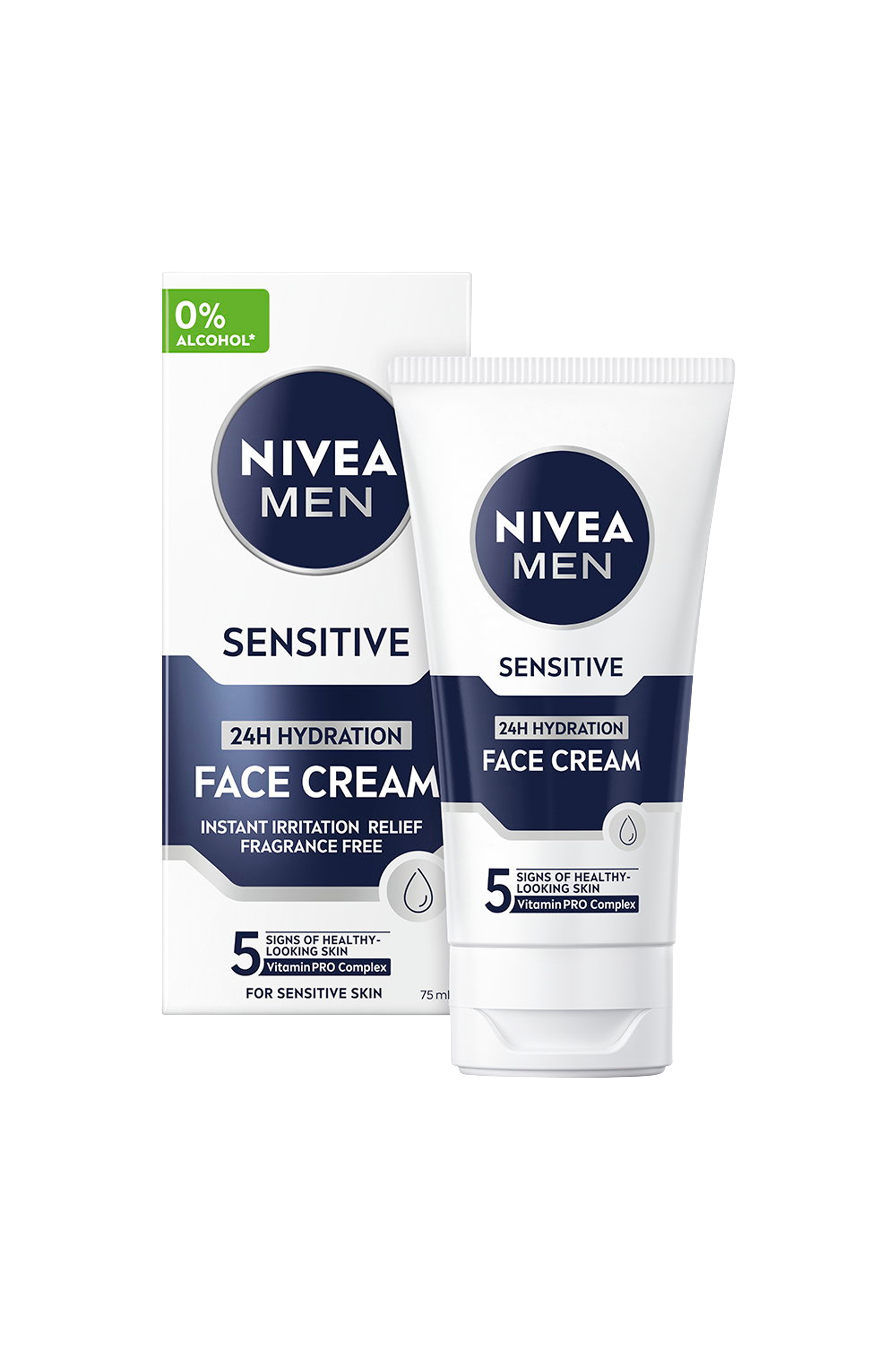 Fugtgivende ansigtscreme, der er specielt udviklet til følsom hud og giver øjeblikkelig lindring af irritation. Den avancerede formel giver ikke kun 24-timers fugt, men går også videre end det for at give omfattende hudpleje og mindre følsom hud ved regelmæssig brug. Beriget med E-vitamin, Provitamin B5 og kamilleekstrakt beroliger og revitaliserer cremen huden og efterlader den glat og blød. Den lette og ikke-klæbende konsistens er nem at påføre og absorberes hurtigt uden at efterlade rester. Ansigtscremen er designet til daglig brug og skaber en beskyttende barriere, der skærmer følsom hud mod miljømæssige faktorer. Denne ansigtscreme er et pålideligt valg for mænd, der er på udkig efter et produkt, der tager hensyn til følsom hud og giver langvarig næring. Cremen er dermatologisk testet og er duft- og alkoholfri (ingen ethylalkohol). 96 % ingredienser af naturlig oprindelse og fuldt genanvendelig tube.