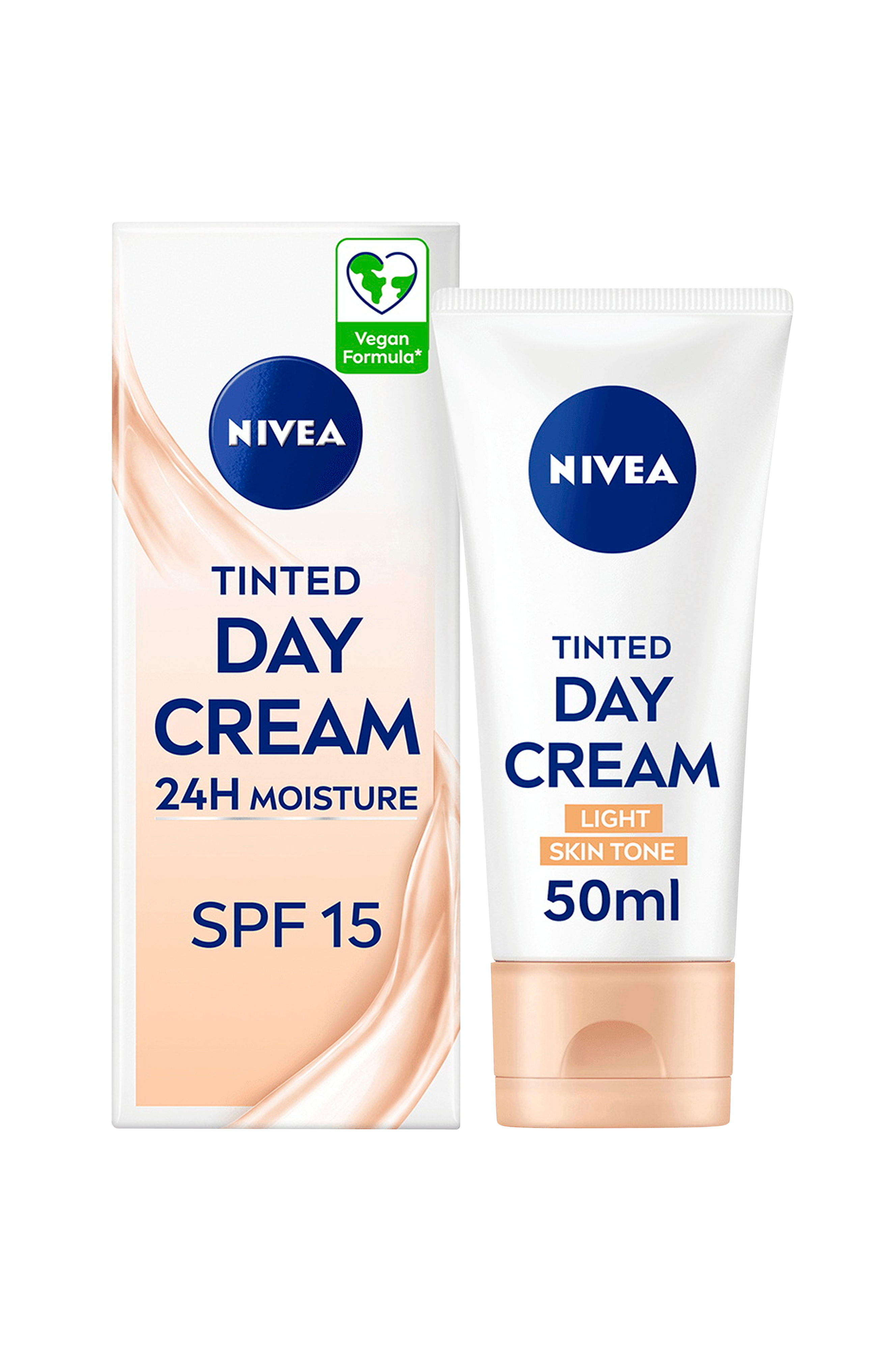 NIVEA Tinted Day Cream Light er beriget med E-vitamin og mineralpigmenter, der fugter din hud i op til 24 timer. Denne tonede ansigtscreme er designet til lysere hudtoner og udjævner hudtonen og giver en naturlig glød, mens den dækker ufuldkommenheder. Den har også SPF 15 for at beskytte mod skadelige solstråler. Den silkebløde formel gør, at din hud føles hydreret, blød og strålende hver dag. Denne veganske formel er velegnet til alle hudtyper og er fri for ingredienser fra dyr. Undgå altid direkte øjenkontakt.