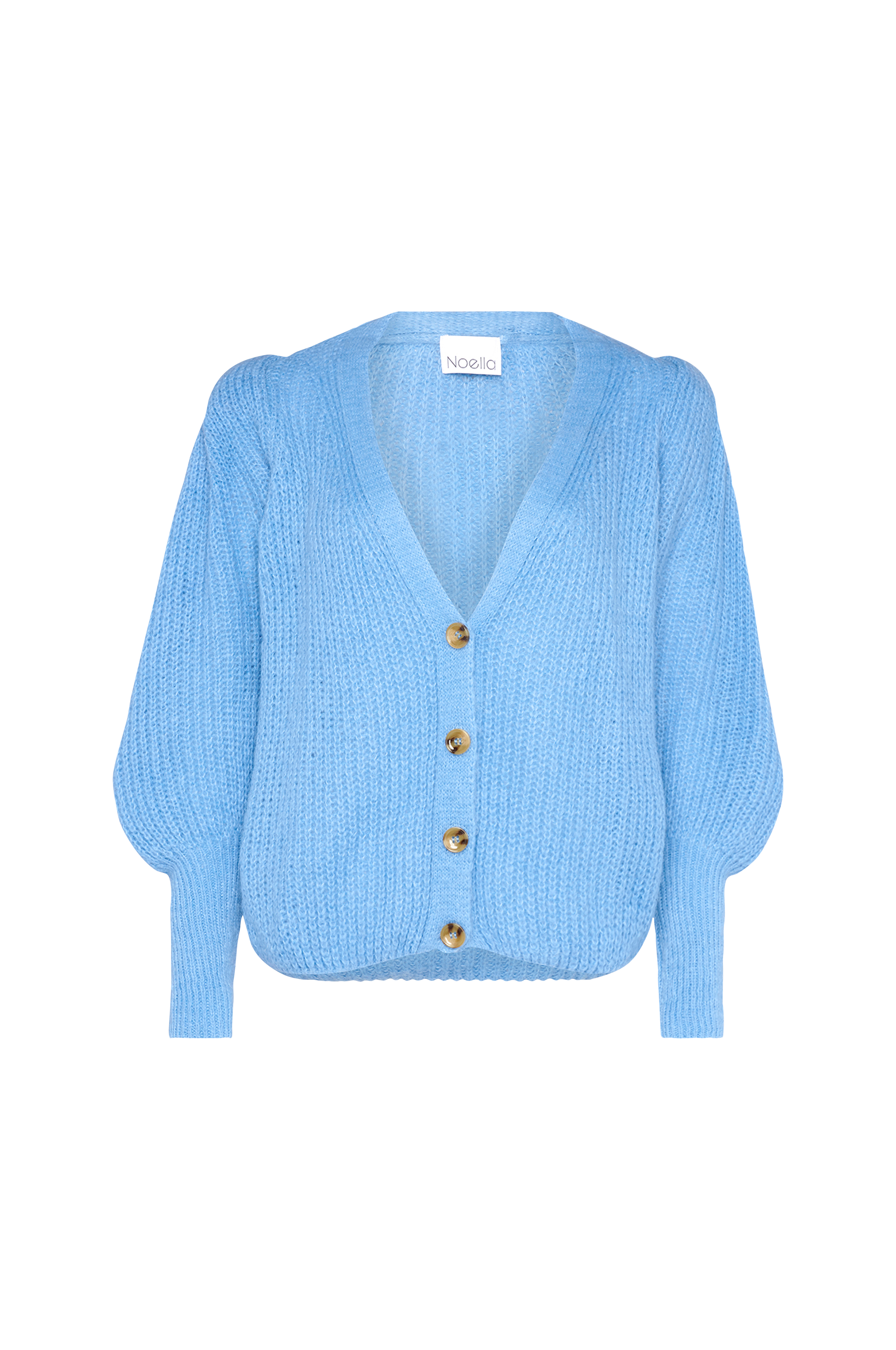 • Strikket cardigan• Ballonærmer med lange ribmanchetter• V-formet halsudskæring