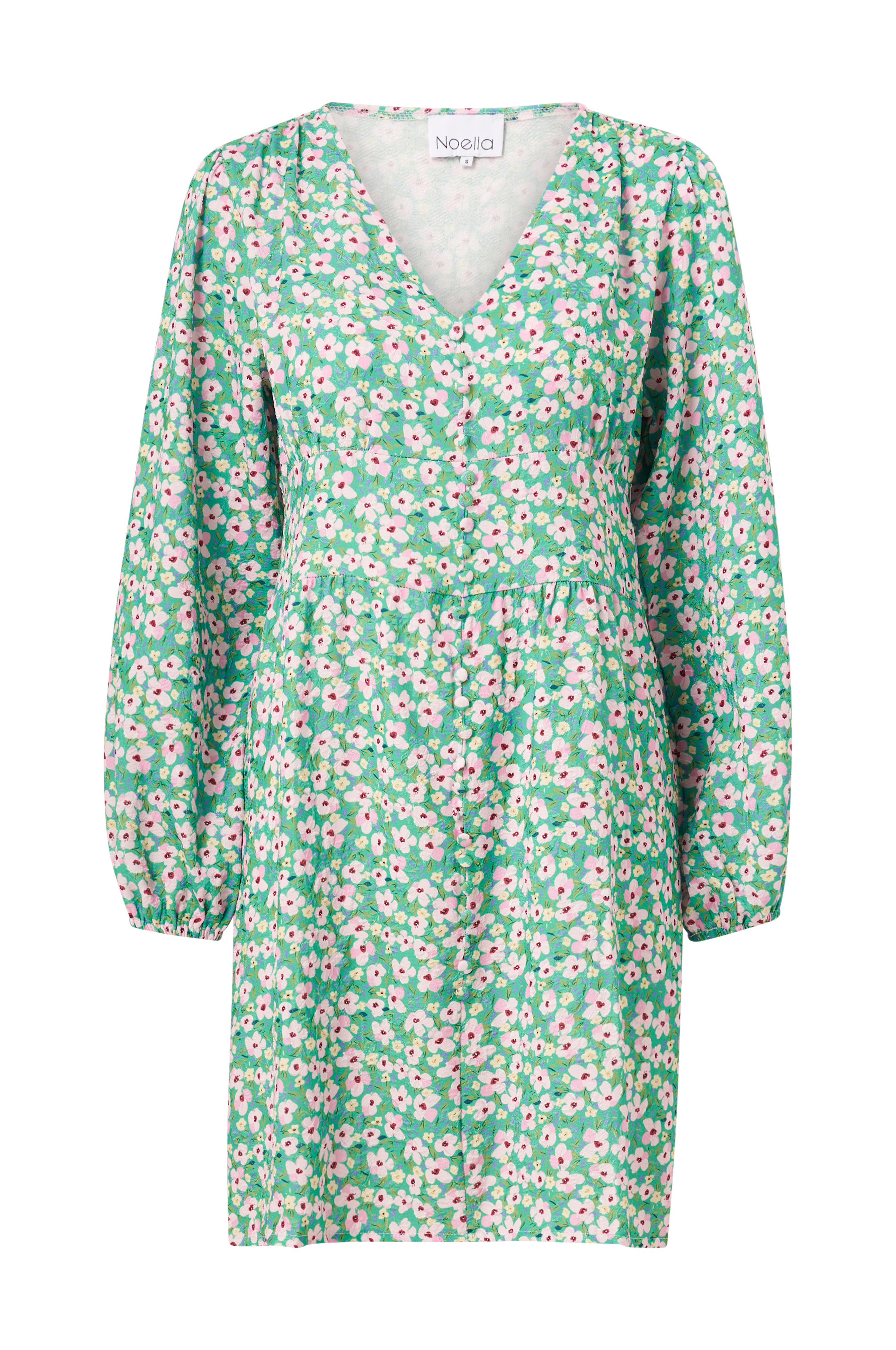 • V-udskæring• Dekorative knapper foran• Ballonærmer• Skjult lynlås i siden• Længde: 90 cm i størrelse S