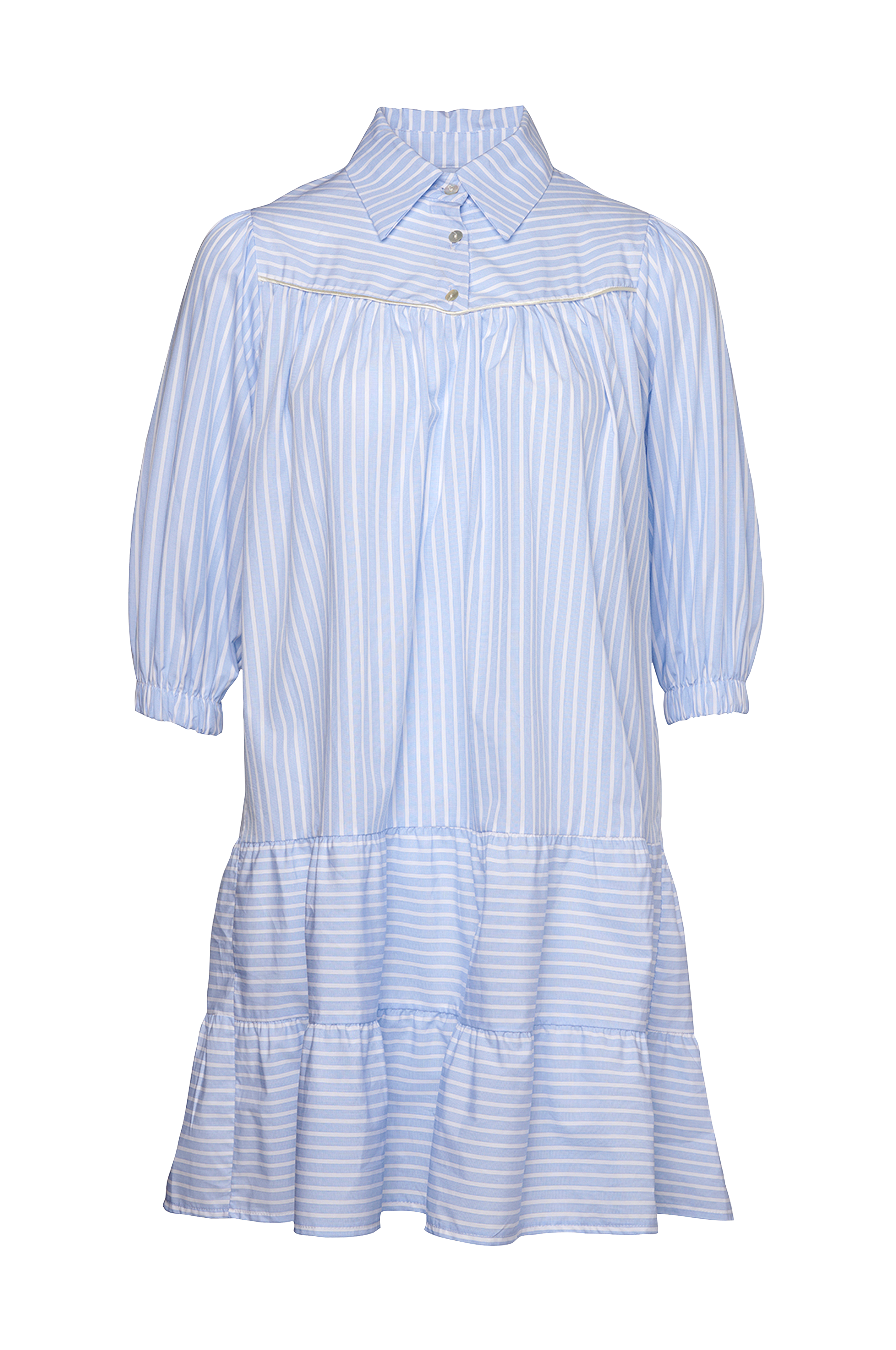 • Kjole i bomuldspoplin• Krave• Tre knapper• 3/4 lange ærmer
