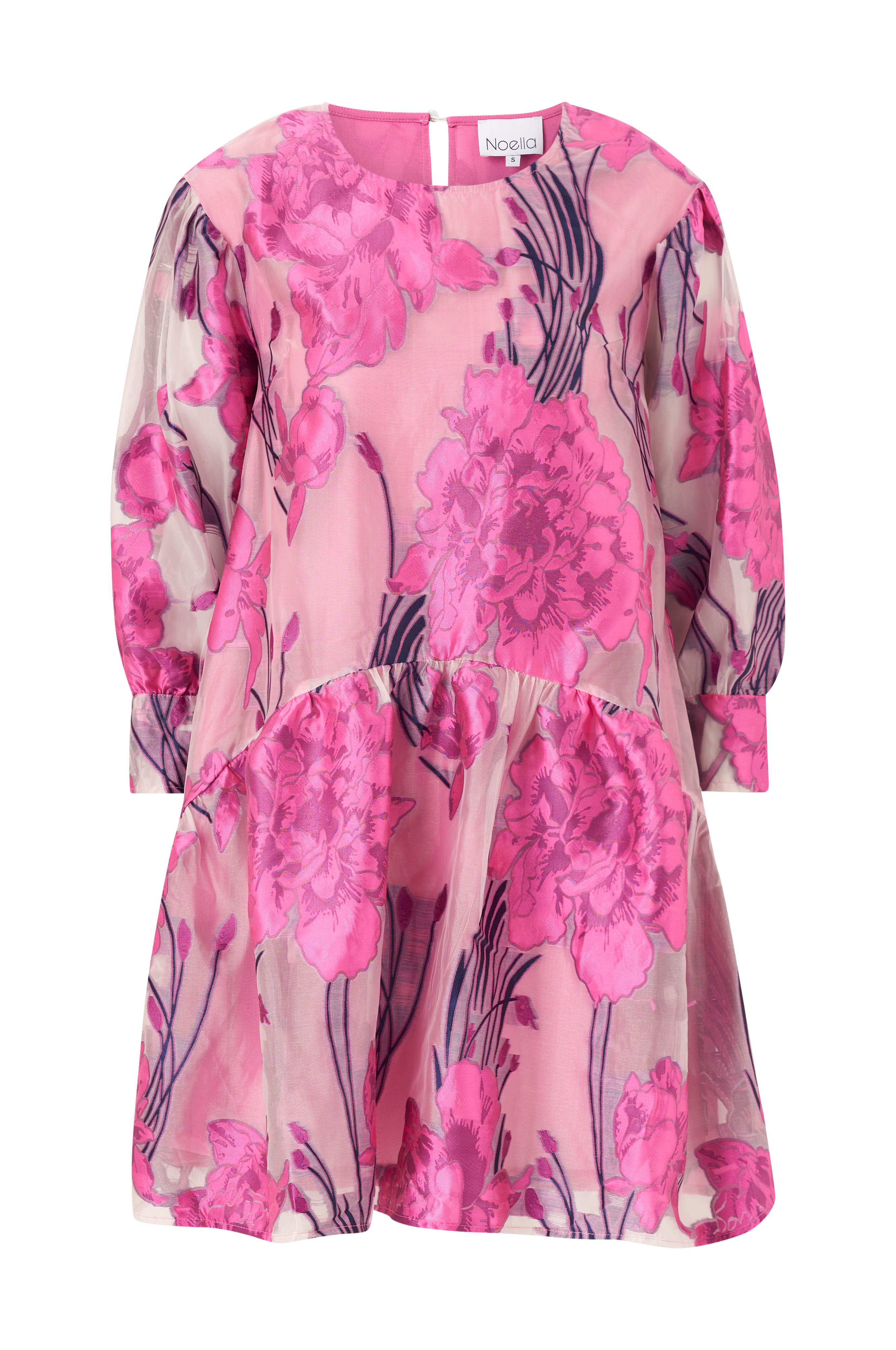• Fremstillet af semitransparent organzastof med jacquardvævet blomstermønster • Vævet, uigennemsigtigt for • Løs pasform • Rund hals • Slids med perleknap i nakken • Ballonærmer med 3/4 længde • Manchet med to perleknaper • Længde: 91 cm i størrelse S