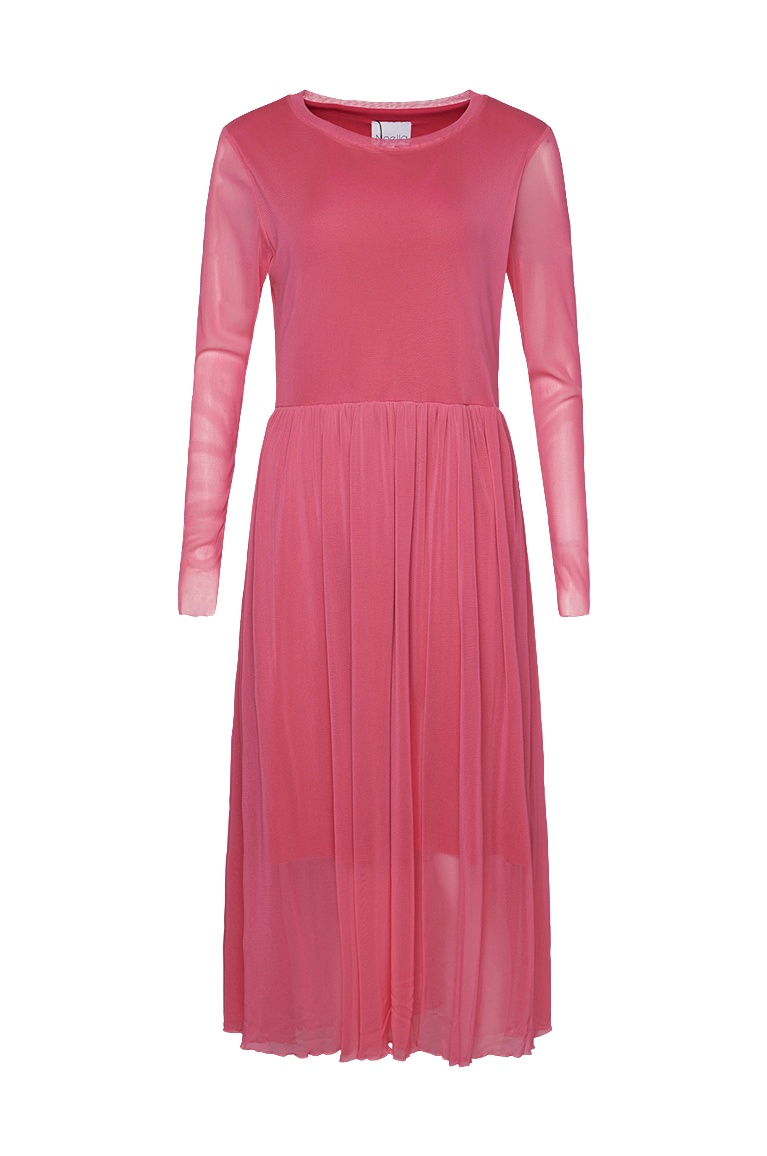 Foret kjole i mesh med lange, uforede ærmer. Rund hals. Elastisk afskæring i taljen. For og underskørt i stretchjersey. Længde ca. 116 cm i str. S.