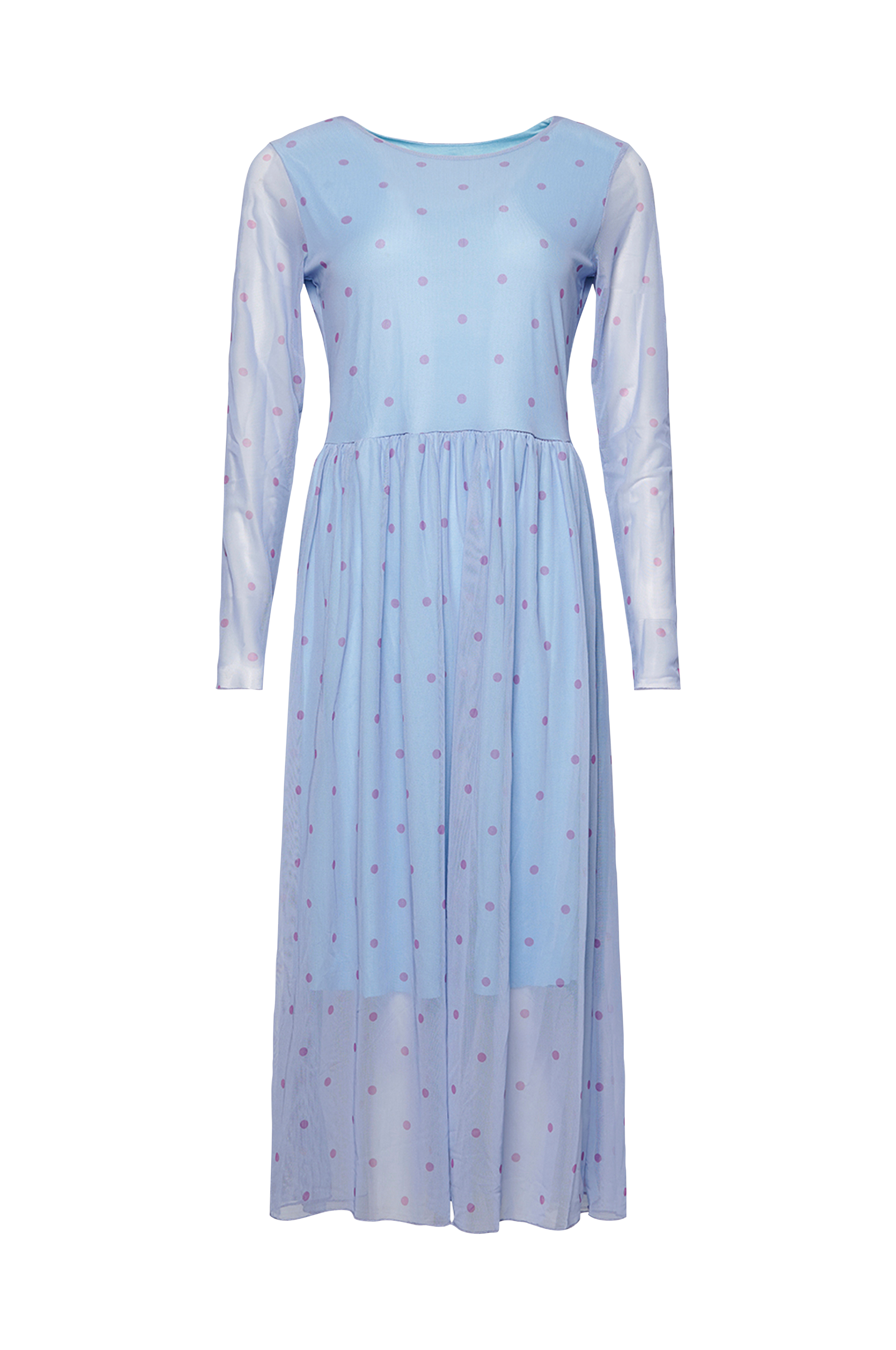 • Kjole i mesh• For i strækjersey• Printet mønster• Rund halsudskæring• Lange, uforede ærmer• Elastisk udskæring ved taljen med samling• Længde: 119 cm i størrelse s