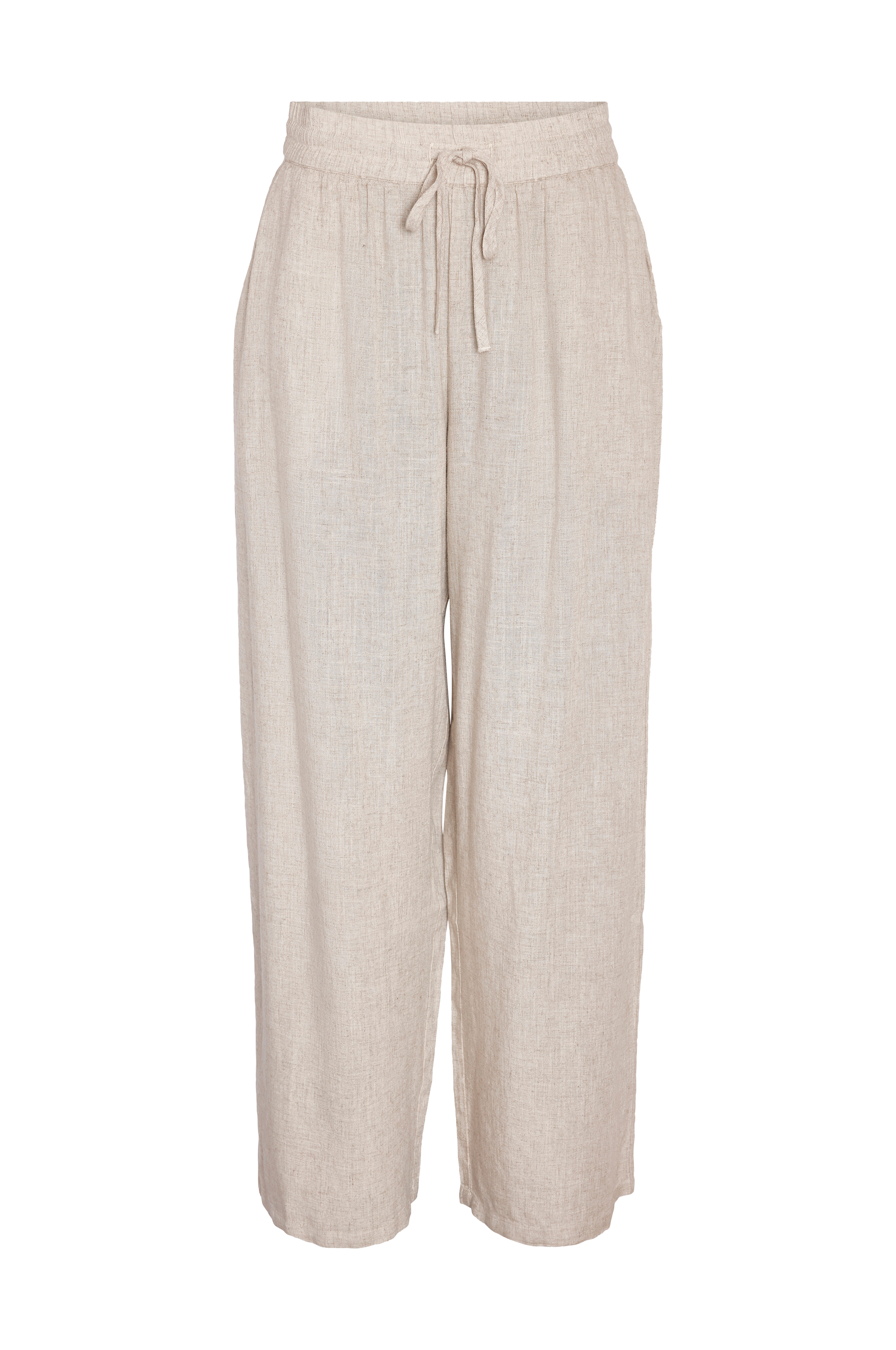 • Brede bukser i hørblanding• Elastisk talje med træksnørre• Lommer i siderne• Store størrelser• Indre benlængde: 78 cm i størrelse 44