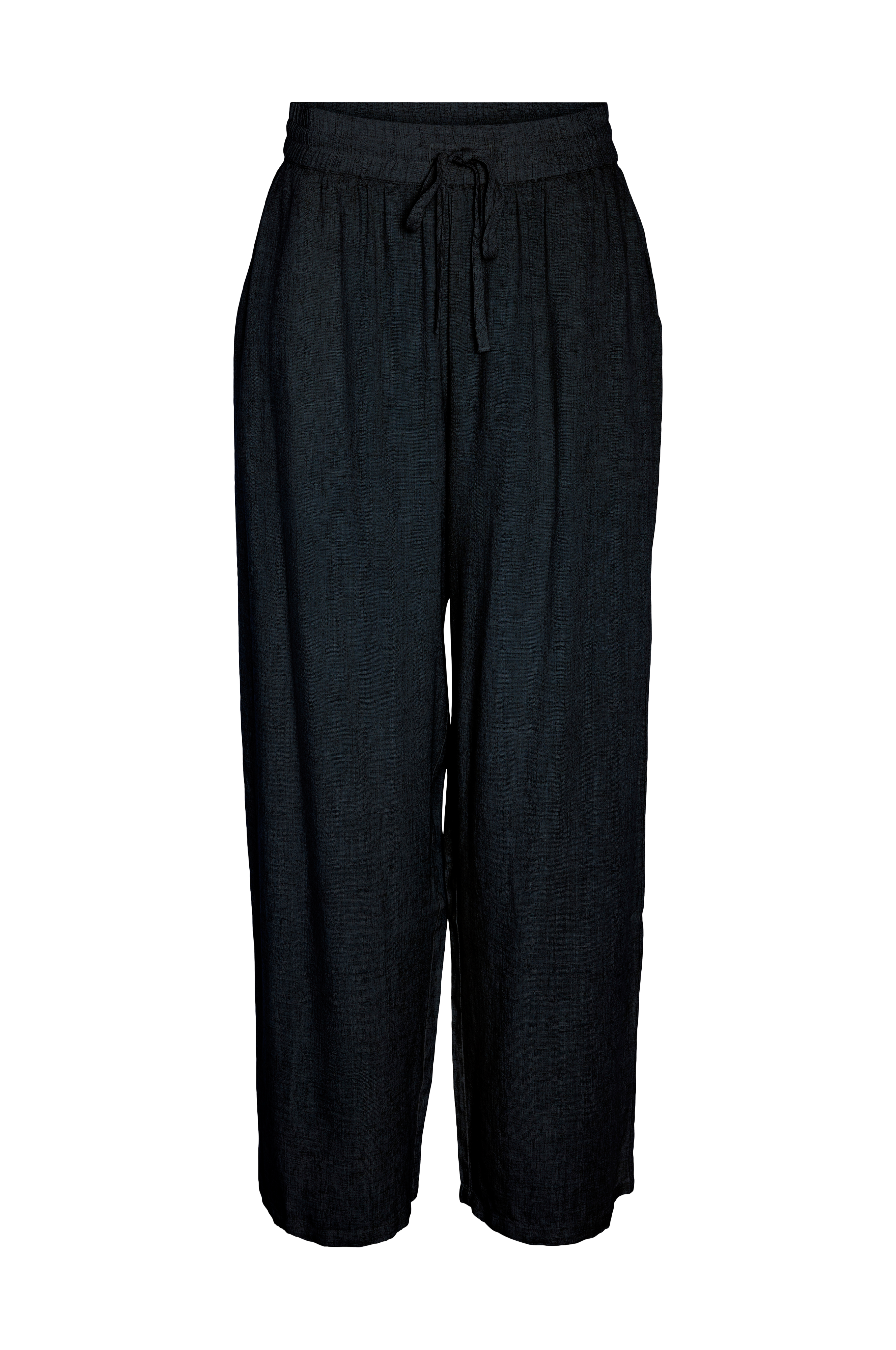• Brede bukser i hørblanding• Elastisk talje med træksnørre• Lommer i siderne• Store størrelser• Indre benlængde: 78 cm i størrelse 44