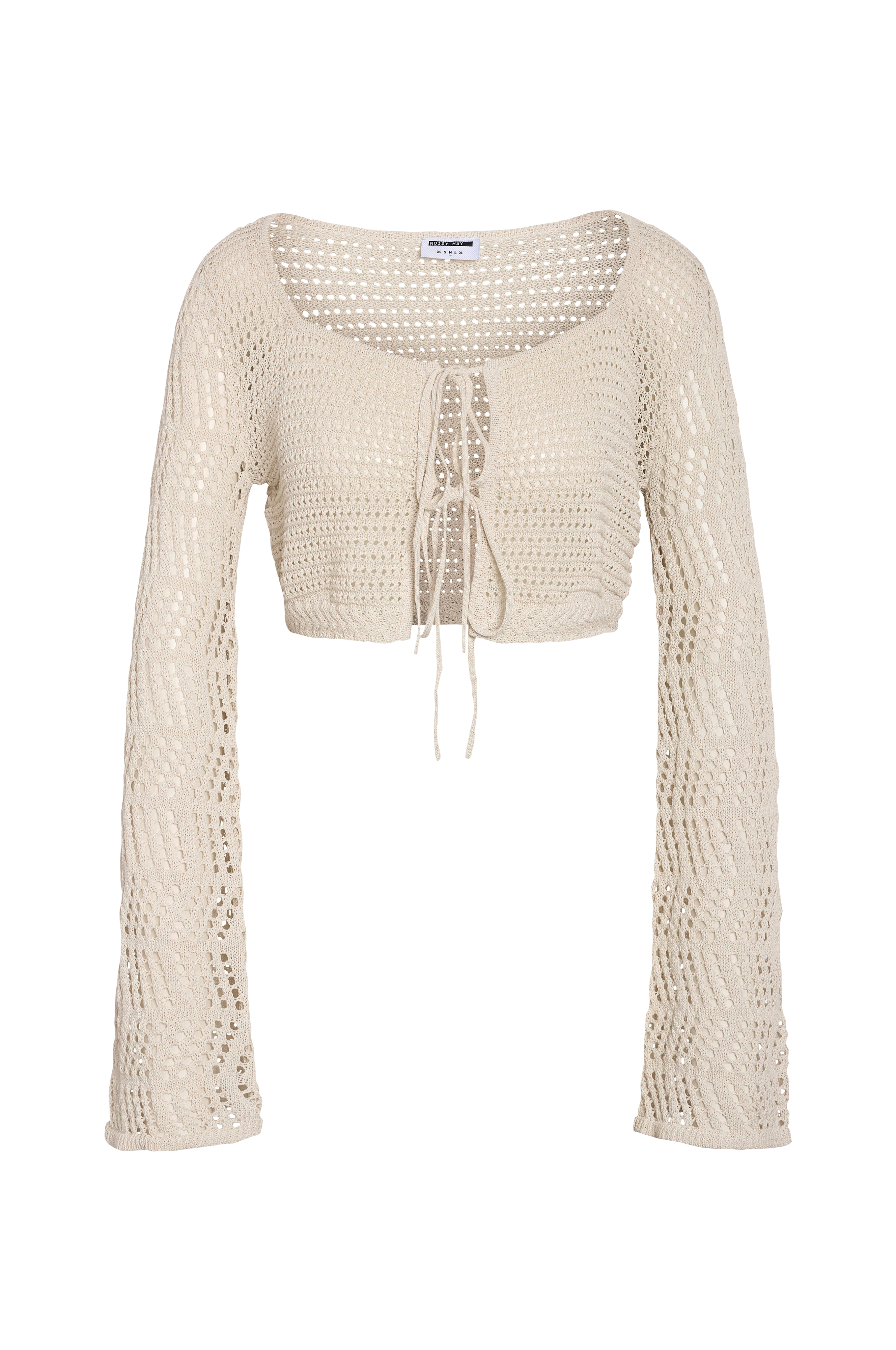 • Fintstrikket, semitransparent cardigan• Model med en strikket detalje• Firkantet halsudskæring• Lange ærmer med svaj• Snørelukning foran• Store størrelser