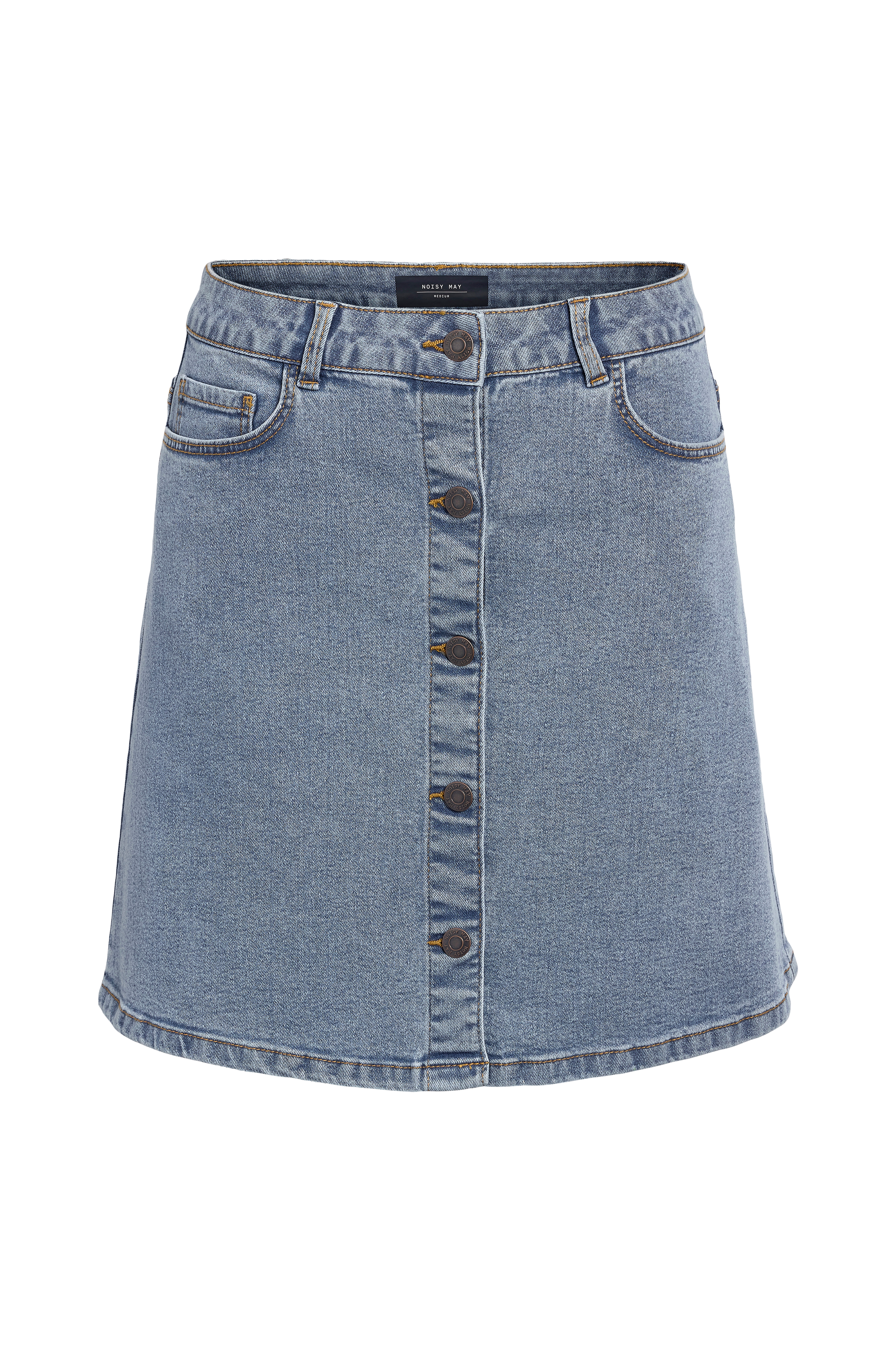 • Store størrelser• Model med svaj i denim• Fem lommer• Metalknapper foran• Længde: 52 cm i størrelse 44