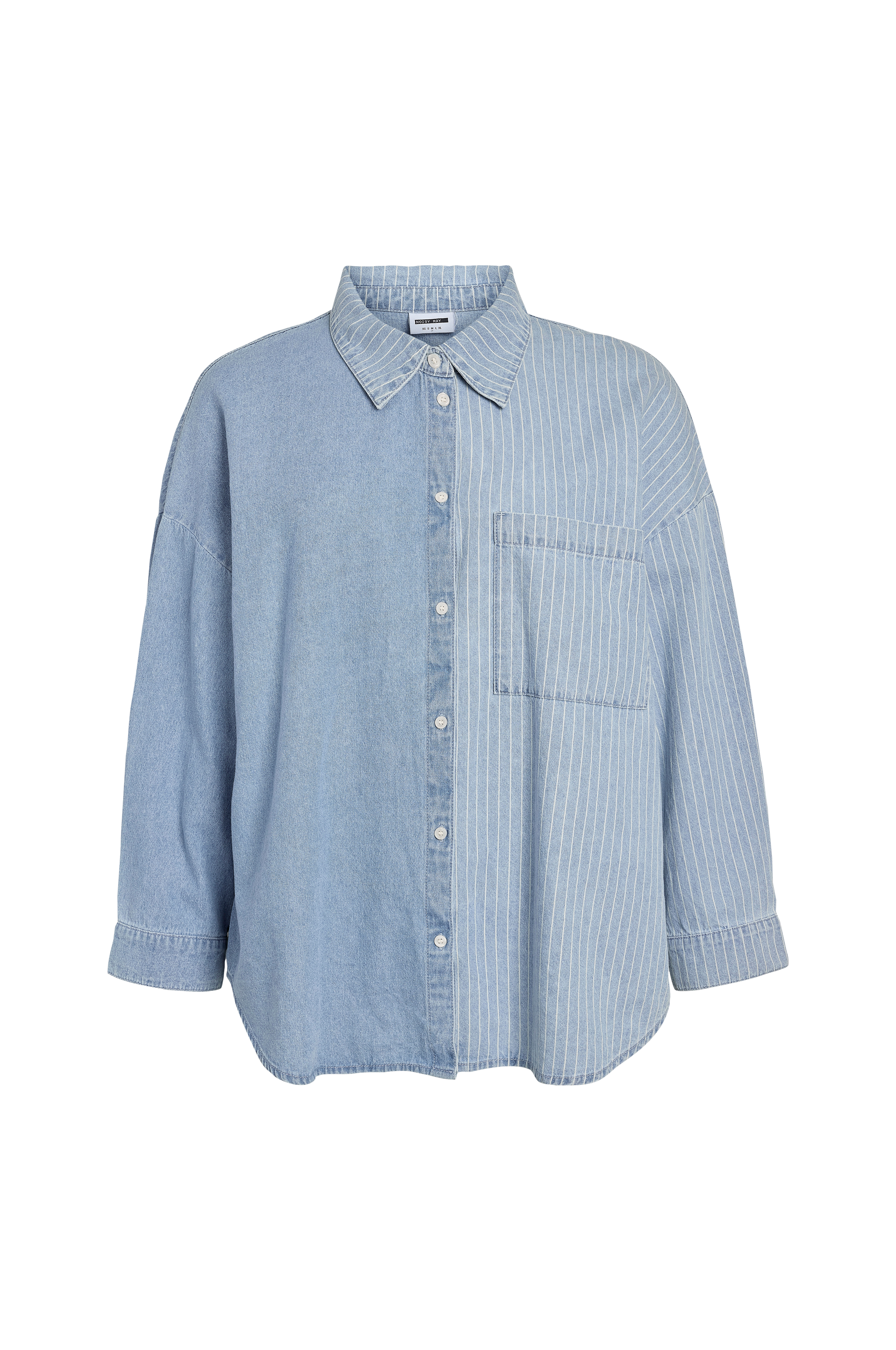 • Lige oversize model i denim• Knapper foran• Nedsænket skulder• Langt ærme med manchet• Afrundet søm