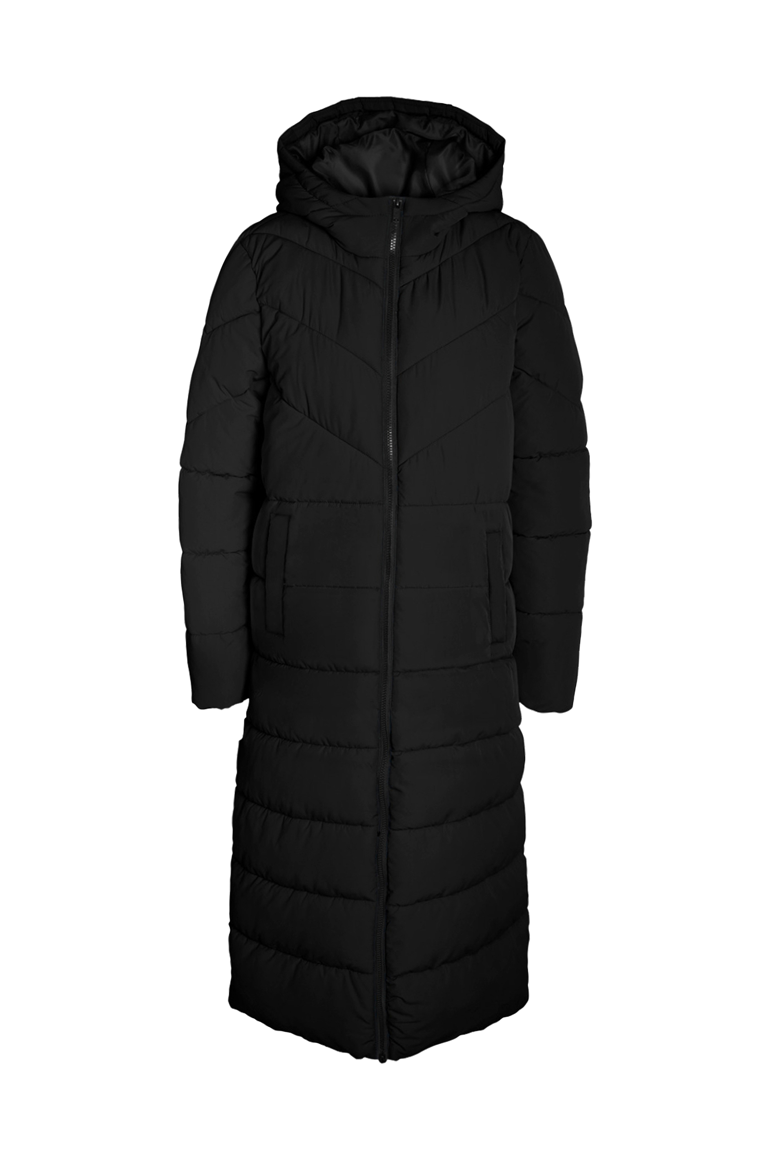 • Quiltet, foret frakke med fast hætte• To-vejs lynlås• To yderlommer• Længde: 117 cm i størrelse S