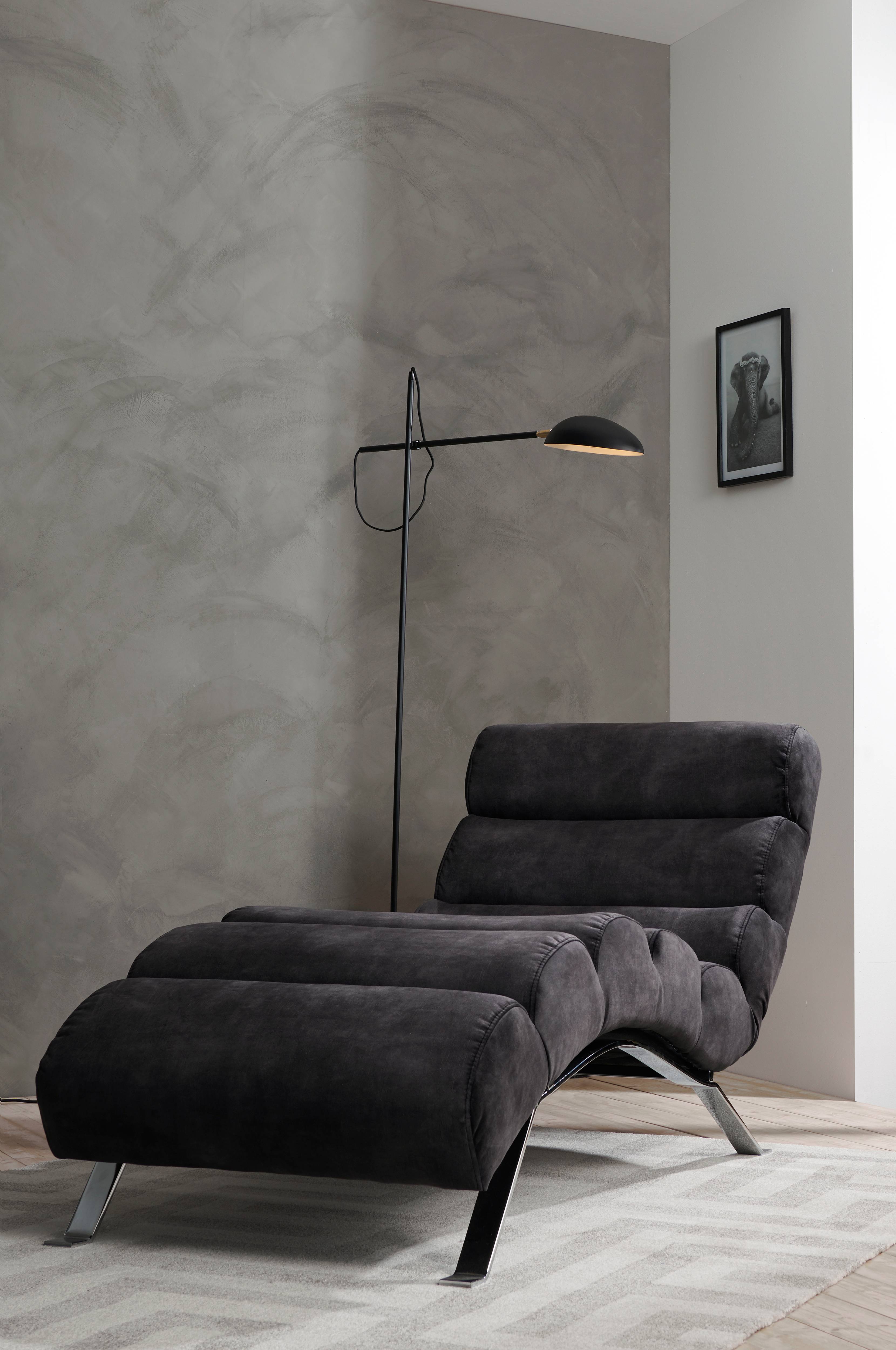 Chaiselong med justerbar ryg. Velourstof, Martindale 88.000, 100 polyester, kemisk rens. Polstring koldskum. Forkromede ben. Mål Længde 147/18, bredde 74, højde 76/96 cm. Siddehøjde 46, siddedybde 115 cm.