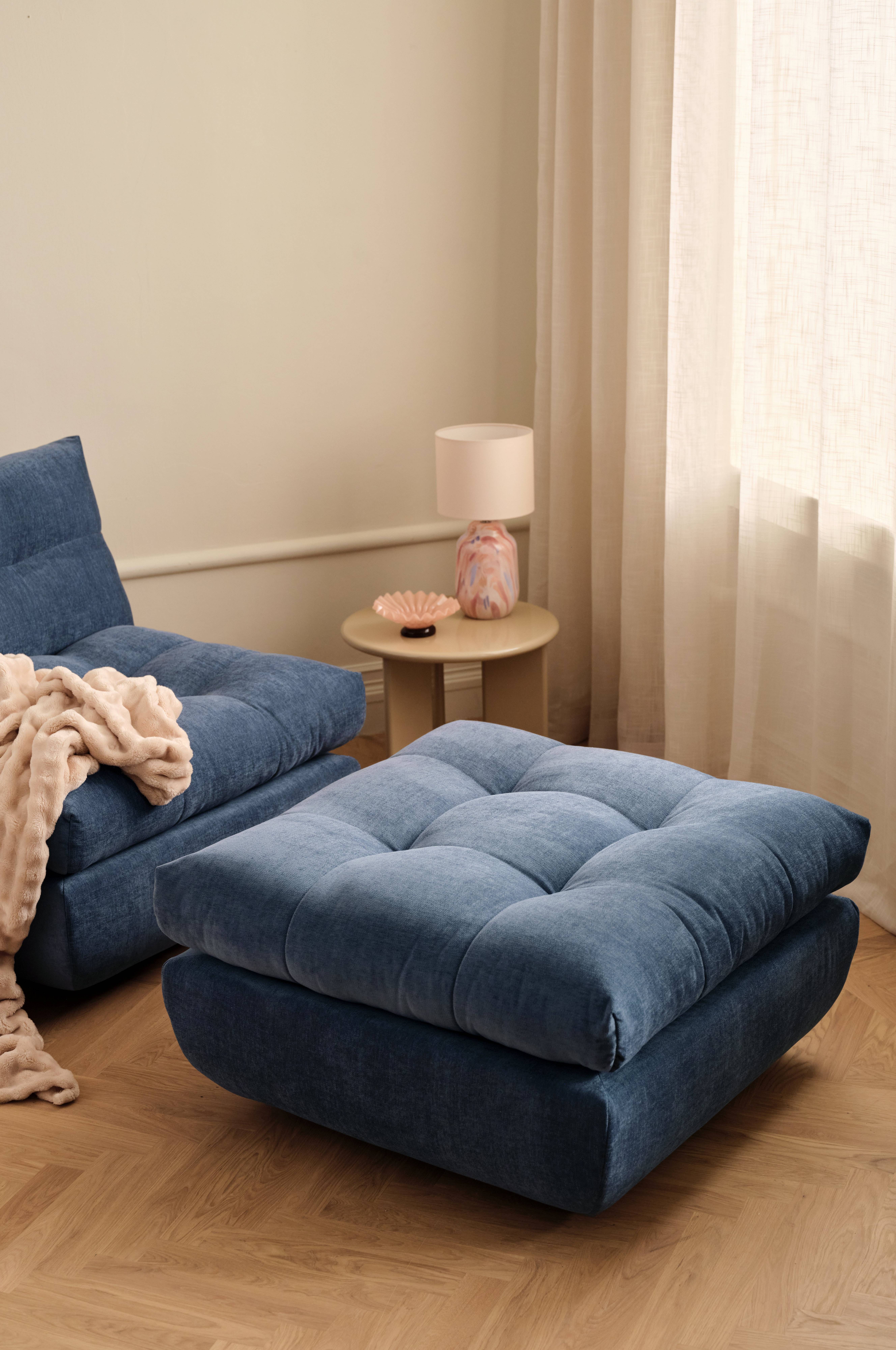 Denne puf er en perfekt balance mellem form og funktion. Kombinerer god komfort med et elegant look. Rammen er med nozag-fjedre. • Skelet i Bøg • Ben i egetræ • Fyld i polyetherskum