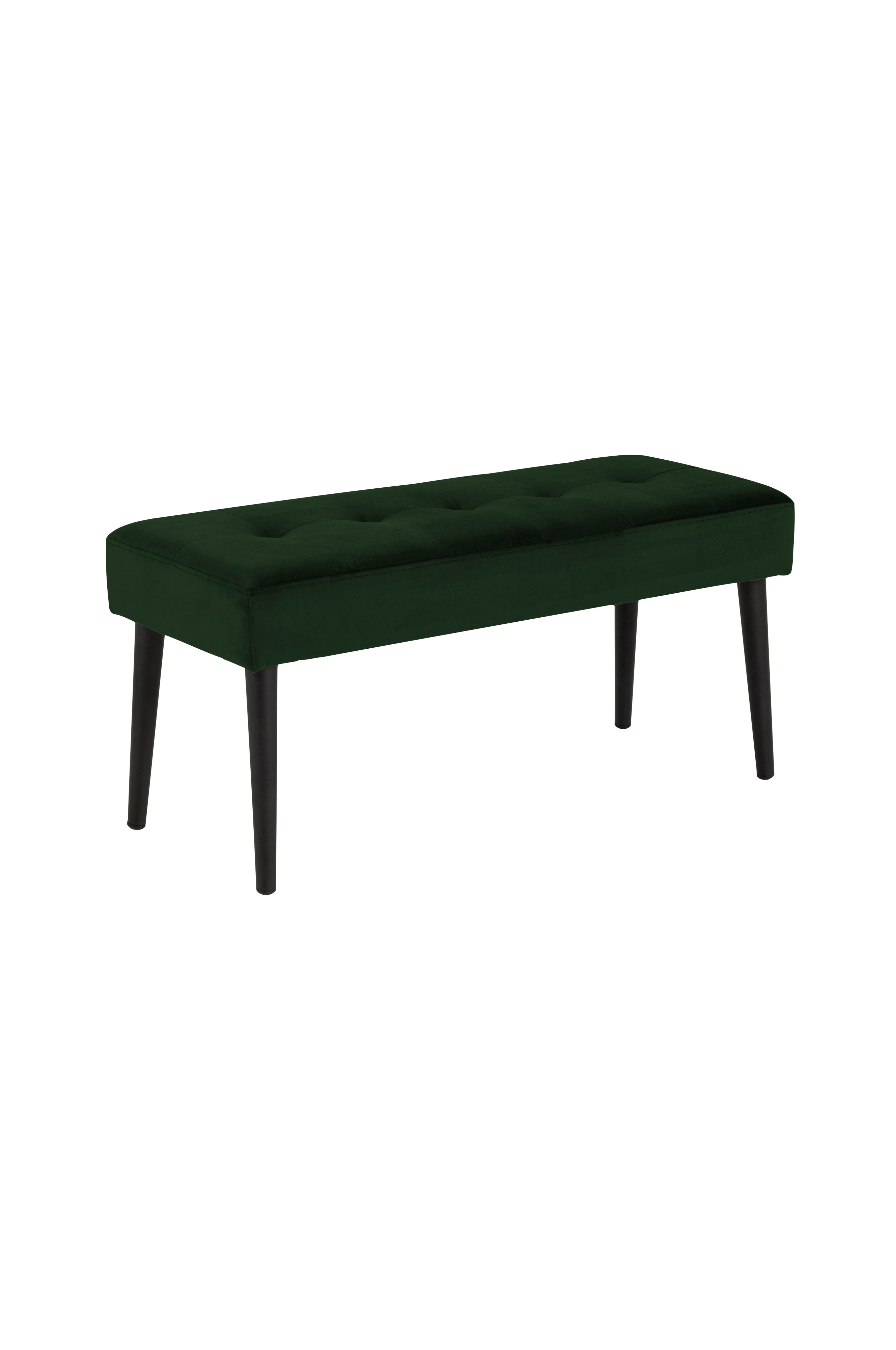 Bænk Gloria med metalstel og sæde polstret med polyeter. Metalben. Stof af 100% velourpolyester. Mål 38 x 95, højde 45 cm. Leveres usamlet.