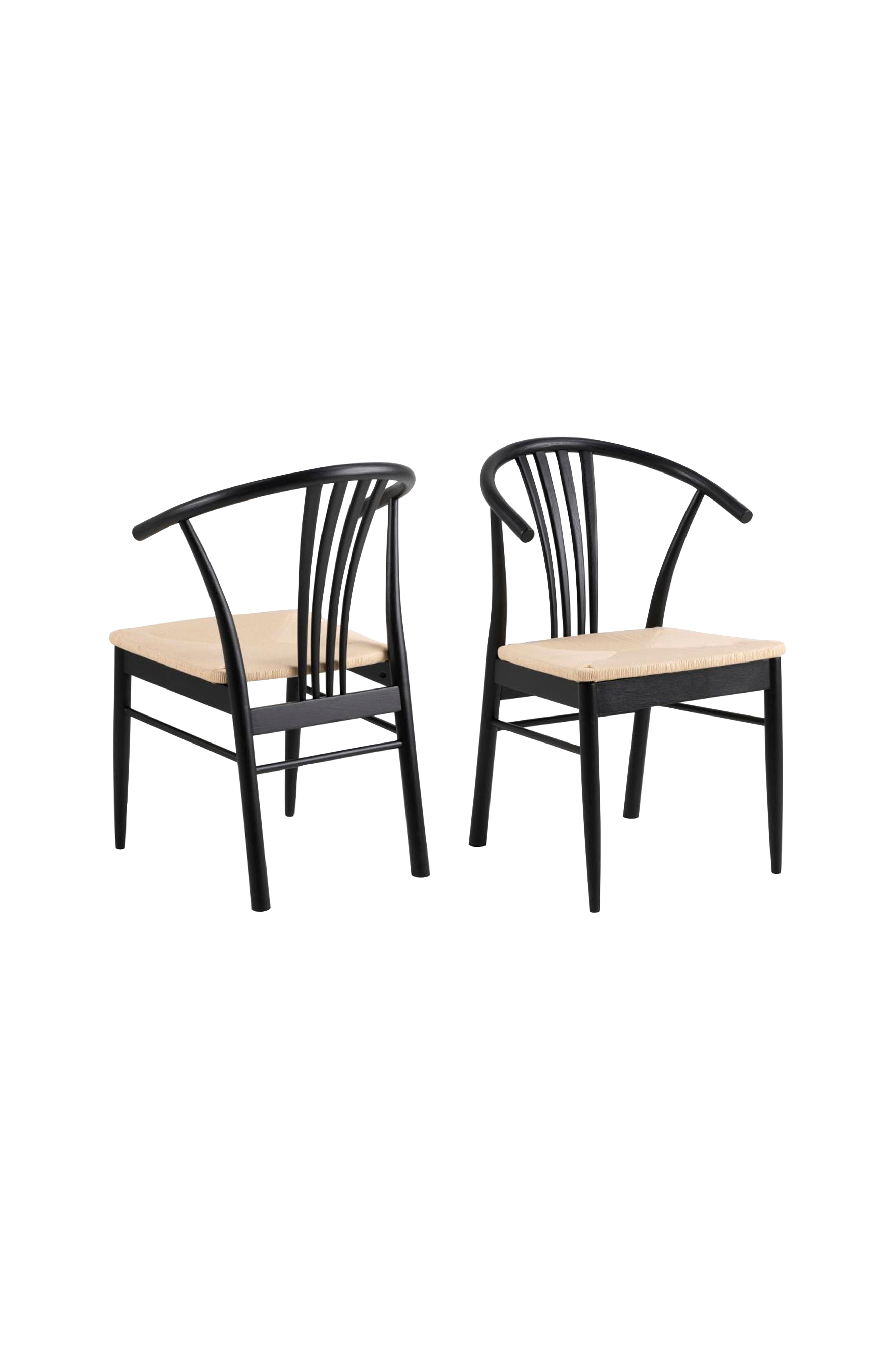 Denne spisebordsstol med buet ryglæn er kendetegnet ved blød skandinavisk æstetik og naturlige materialer og kan finde sin plads i mange hjem takket være sit klassiske look. Det flettede sæde er lavet af papirreb, mens resten af stolen er lavet af lakeret egetræ.