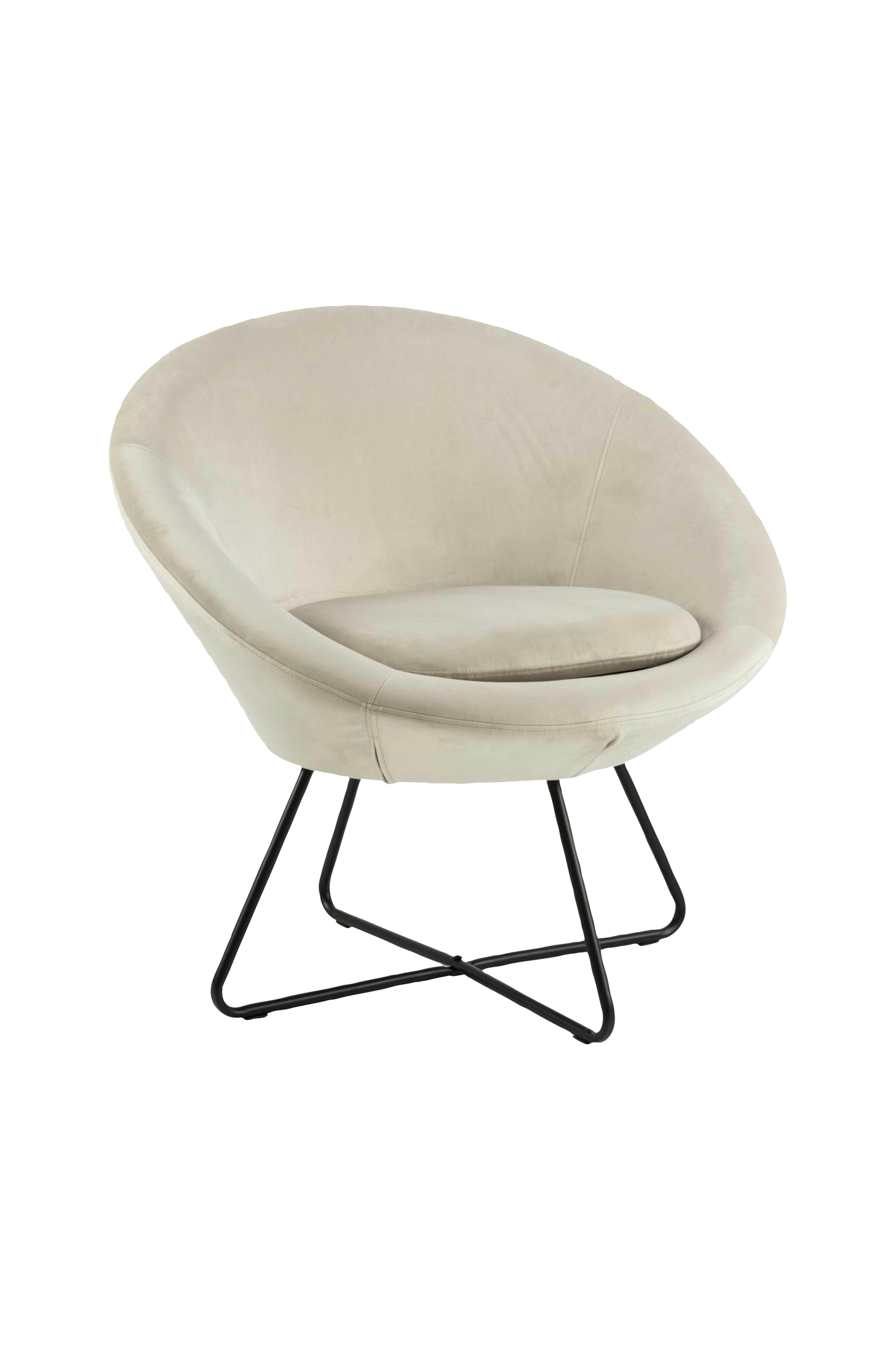 Med en organisk form giver denne stol stuen en stilfuld loungestil. Det lette design understreges af et sort metalstel med en pulverlakeret finish, der holder det polstrede, bløde sæde med velourbetræk og får dig til at sidde komfortabelt. Det smukke velourstof er meget blødt og giver møblet en fin dybde. Velourstoffets farve skifter afhængigt af lyset og retningen på luven, hvilket giver et levende og luksuriøst udtryk.