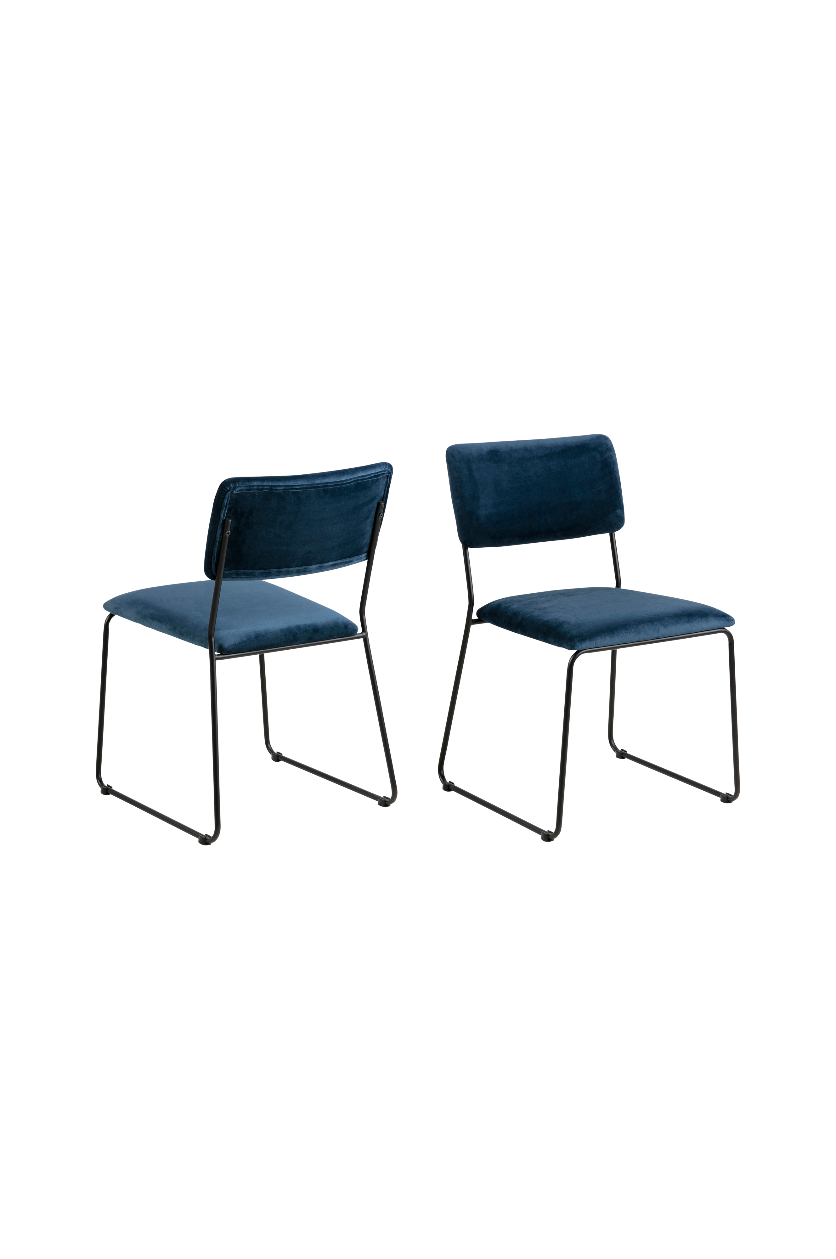 2-pak moderne spisebordsstole med let udtryk. Minimalistiske, tynde metalben. Nogen montering kræves. Dupper minimerer risikoen for ridser på gulvet.