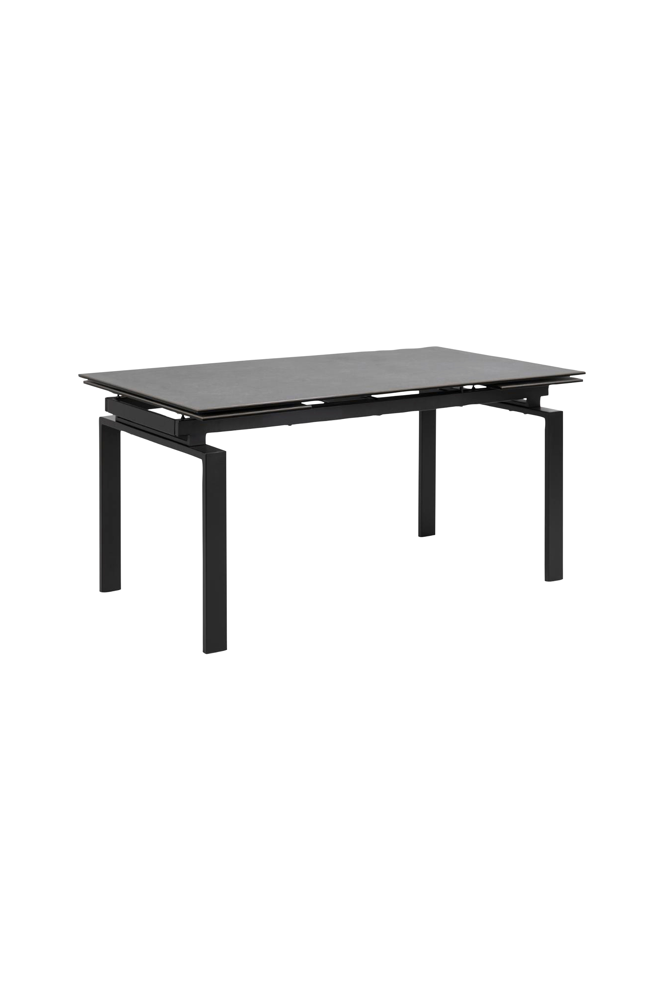 En perfekt blanding af sort glas og pulverlakeret metal. Dette enestående spisebord bliver blikfanget i spisegruppen. Og det er ikke bare cool, det er også praktisk. Når du har middagsselskab, kan bordet nemt udvides til at give plads til flere gæster. Tillægsplade medfølger.