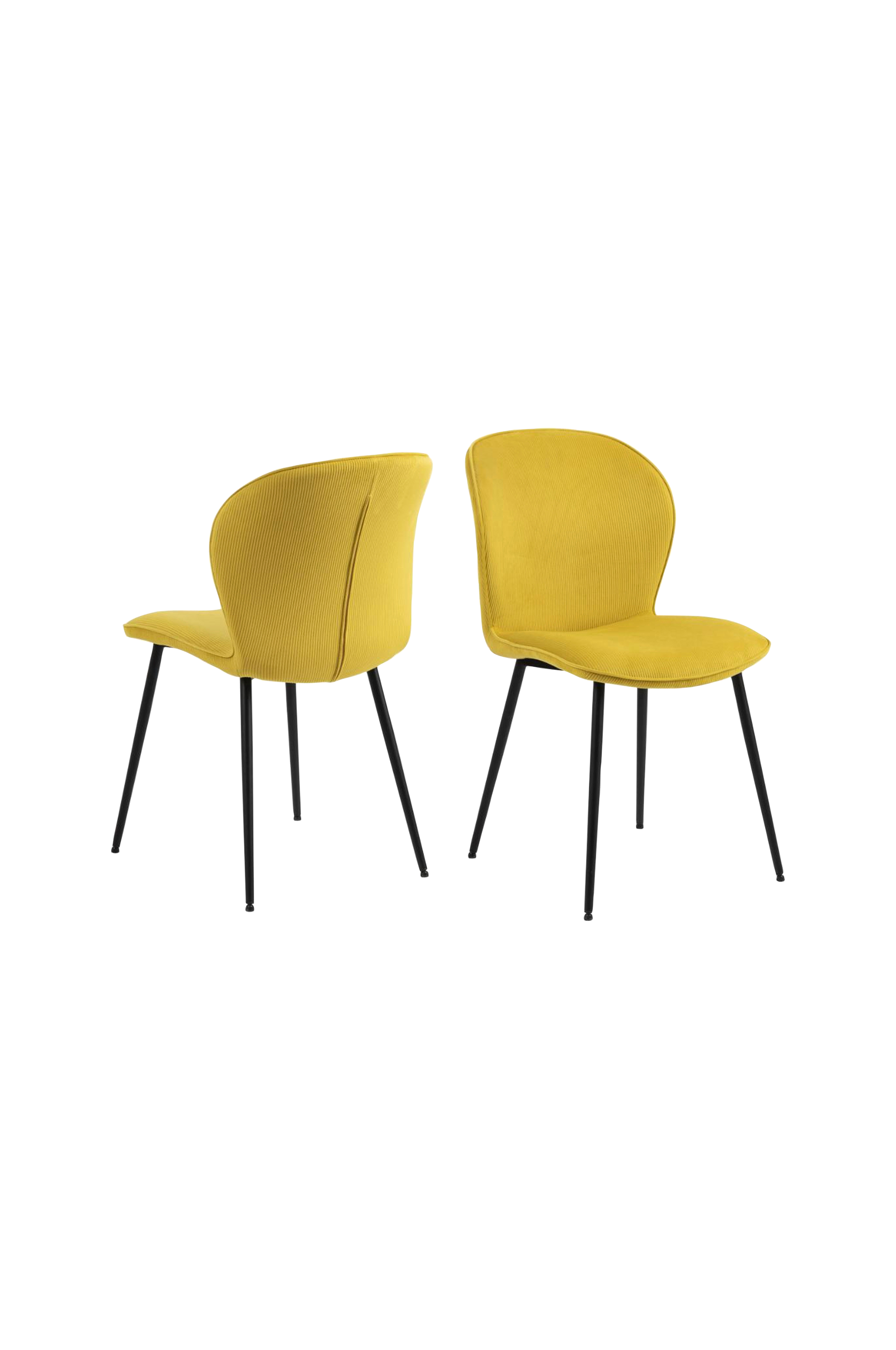 Trendy former, moderne, sorte ben og et behagelig sæde - denne spisebordsstol har alt. Detaljen med kantbånd på det organisk formede sæde tilføre lidt ekstra som gør at stolen skiller sig ud. Stolen har tilspidsede metalben og giver spisegruppen en moderne stil.